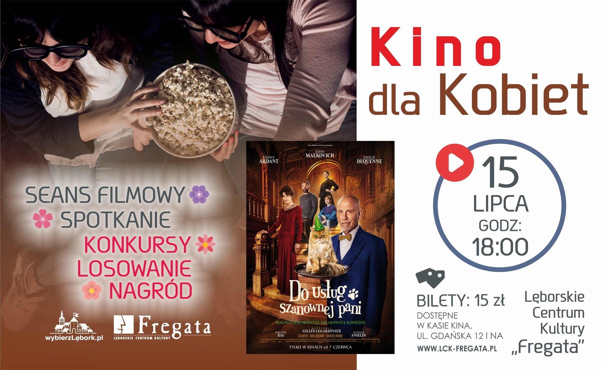 Cena biletu to 15 złotych. Zapraszamy do zakupu za pośrednictwem naszej strony www.lck-fregata.pl lub w kasie kina przy ulicy Gdańskiej 12.