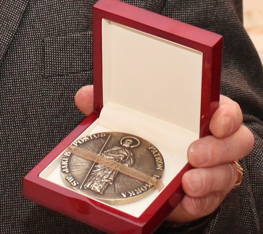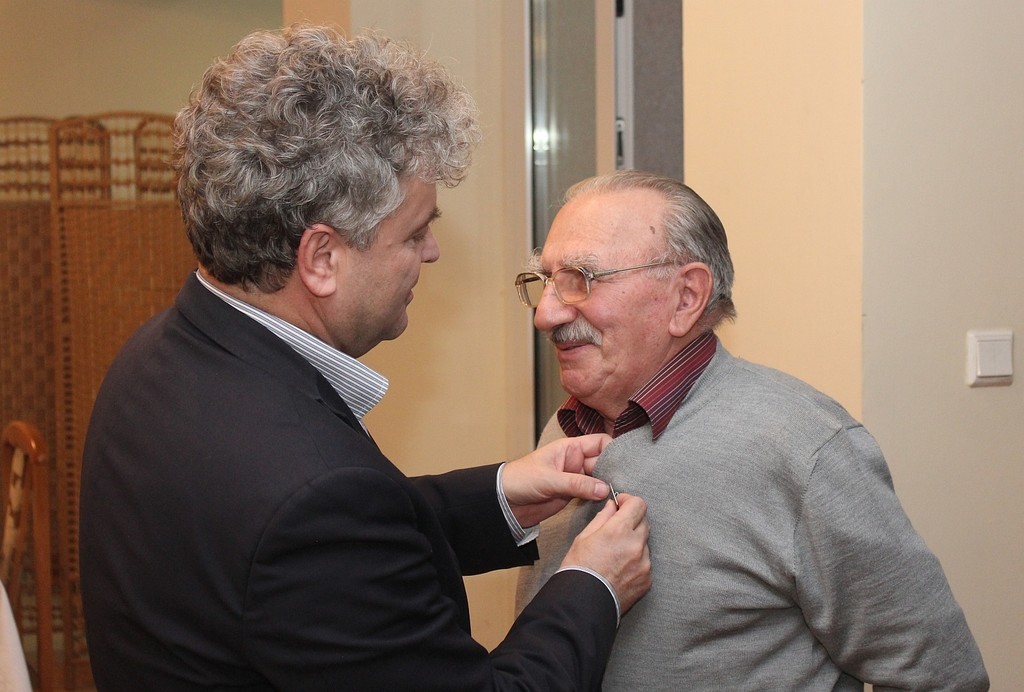 Prezes Zarządu Rodzinnego Ogrodu Działkowców Kazimierz Adamczyk z rąk burmistrza Witolda Namyślaka odebrał Medal Burmistrza za wieloletnią pracę i zasługi dla Lęborka.