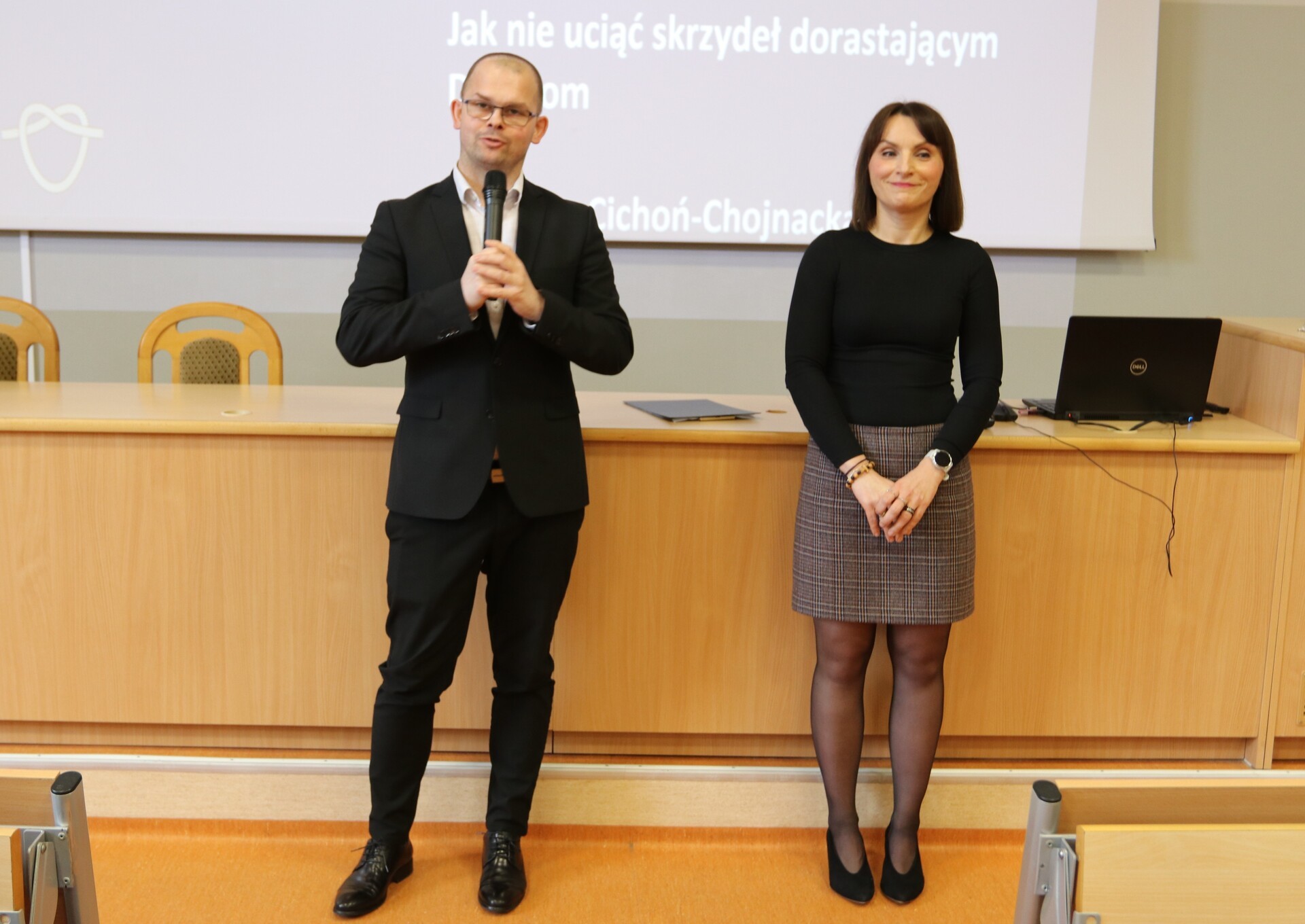 Niezwykle interesujące wystąpienie dr. n. med. Agaty Cichoń - Chojnackiej o tym, jak nie uciąć skrzydeł dorastającym dzieciom, rozpoczęło konferencję pt. „Wspieraj mądrze”, zorganizowaną przez Poradnię Psychologiczno - Pedagogiczną w Lęborku. Wydarzenie otworzyli starosta lęborski Tomasz Litwin i burmistrz Lęborka Jarosław Litwin. Wszystkich prelegentów i gości, głównie dyrektorów szkół, nauczycieli, pedagogów i psychologów powitała dyrektor poradni Aleksandra Kasprzykowska wyjaśniając, skąd wziął się pomysł na tematykę spotkania zorganizowanego gościnnie w sali audiowizualnej Zespołu Szkół Mechaniczno – Informatycznych w Lęborku.