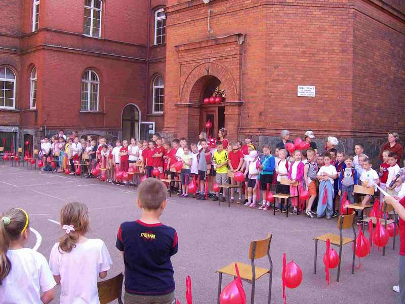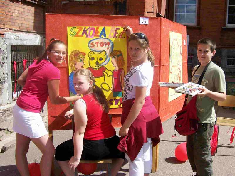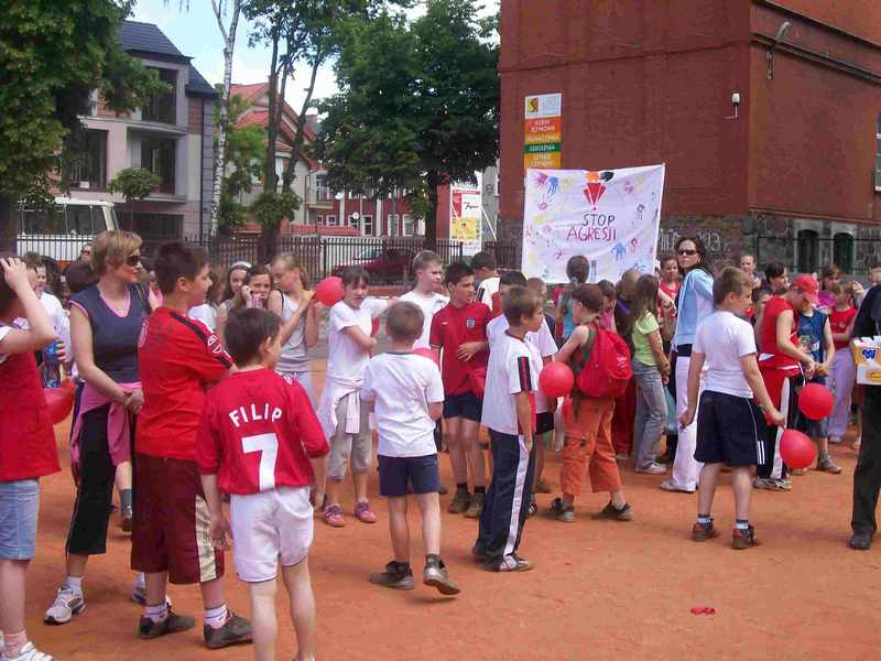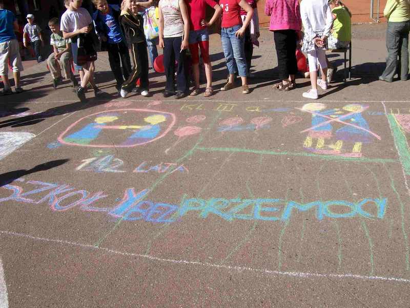 Uczniowie z klas I - III rysowali prace kolorową kredą na asfalcie na temat „STOP PRZEMOCY", natomiast klasy starsze przygotowały prace plastyczne na brystolu. Uczniowie obejrzeli spektakl o tematyce profilaktycznej „Królewna Śnieżka inaczej czyli jak się nie uzależniać", w wykonaniu uczniów klasy Va pod opieką nauczyciela języka polskiego Jolanty Gołębiowskiej.