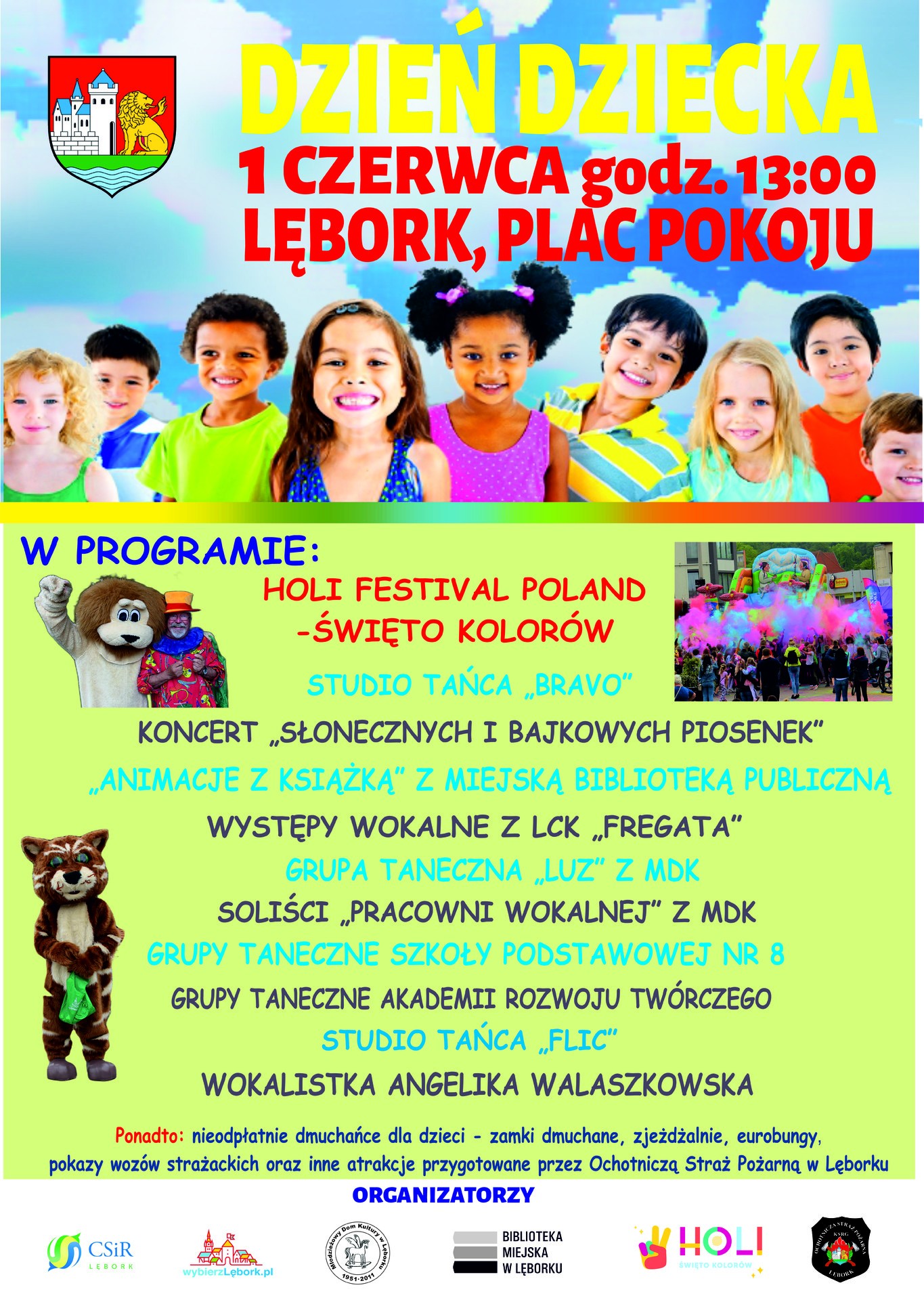 W dniu 1 czerwca 2022 r. w godz. 13:00-19:30 na pl. Pokoju w Lęborku odbędzie się festyn plenerowy z okazji Międzynarodowego Dnia Dziecka. W programie: Holi Festival Poland - święto kolorów, koncert słonecznych i bajkowych piosenek oraz występy artystyczne na scenie przygotowane przez dzieci i młodzież z Lęborskiego Studia Tańca Bravo, Studia Tańca Flic, Młodzieżowego Domu Kultury, Studia Tańca Replay, grupy tanecznej Akademii Rozwoju Twórczego oraz grupy wokalnej z LCK Fregata. Na scenie wystąpi również debiutująca wokalistka Angelika Walaszkowska.