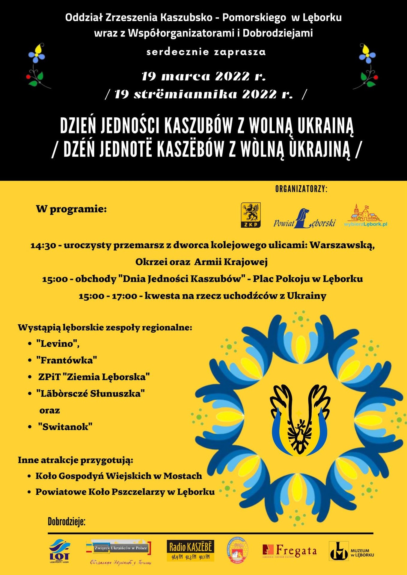 Dzień Jedności Kaszubów z Wolną Ukrainą - pod takim hasłem przebiegać będą w Lęborku tegoroczne obchody Dnia Jedności Kaszubów w sobotę 19 marca br.