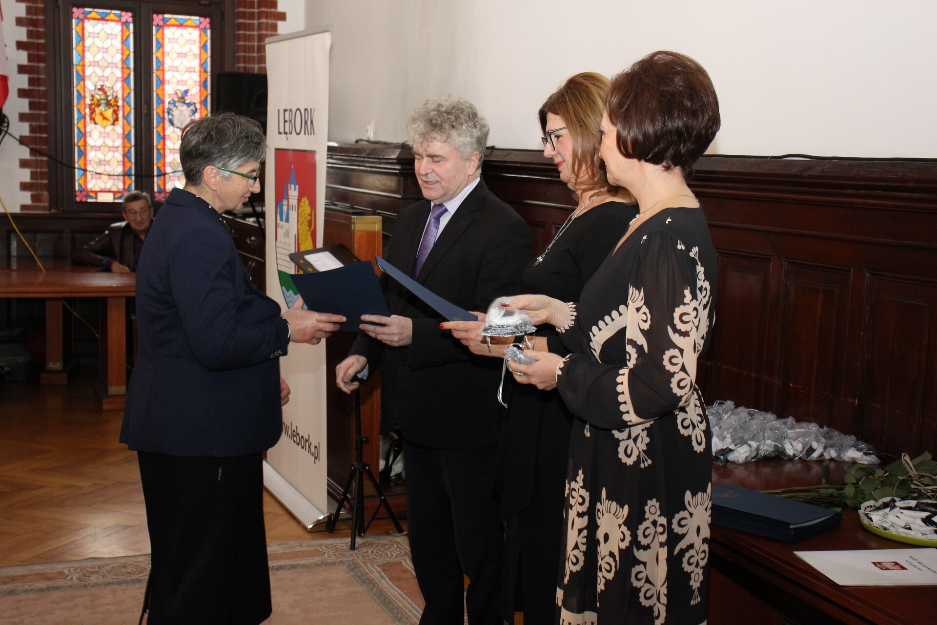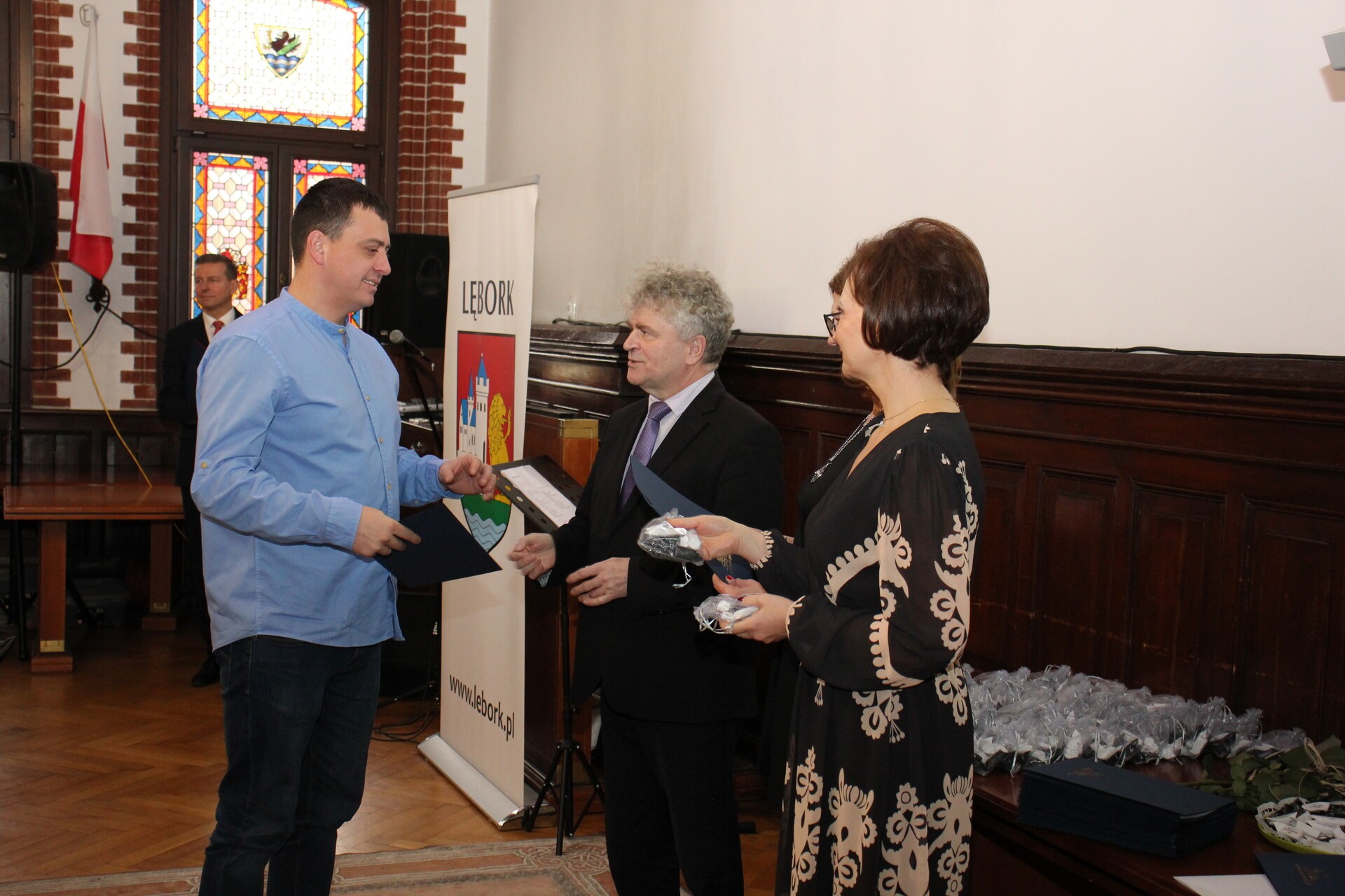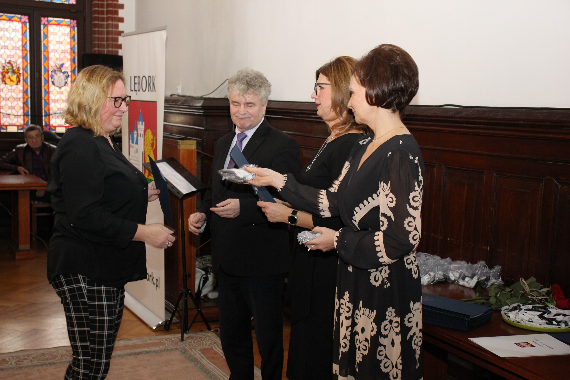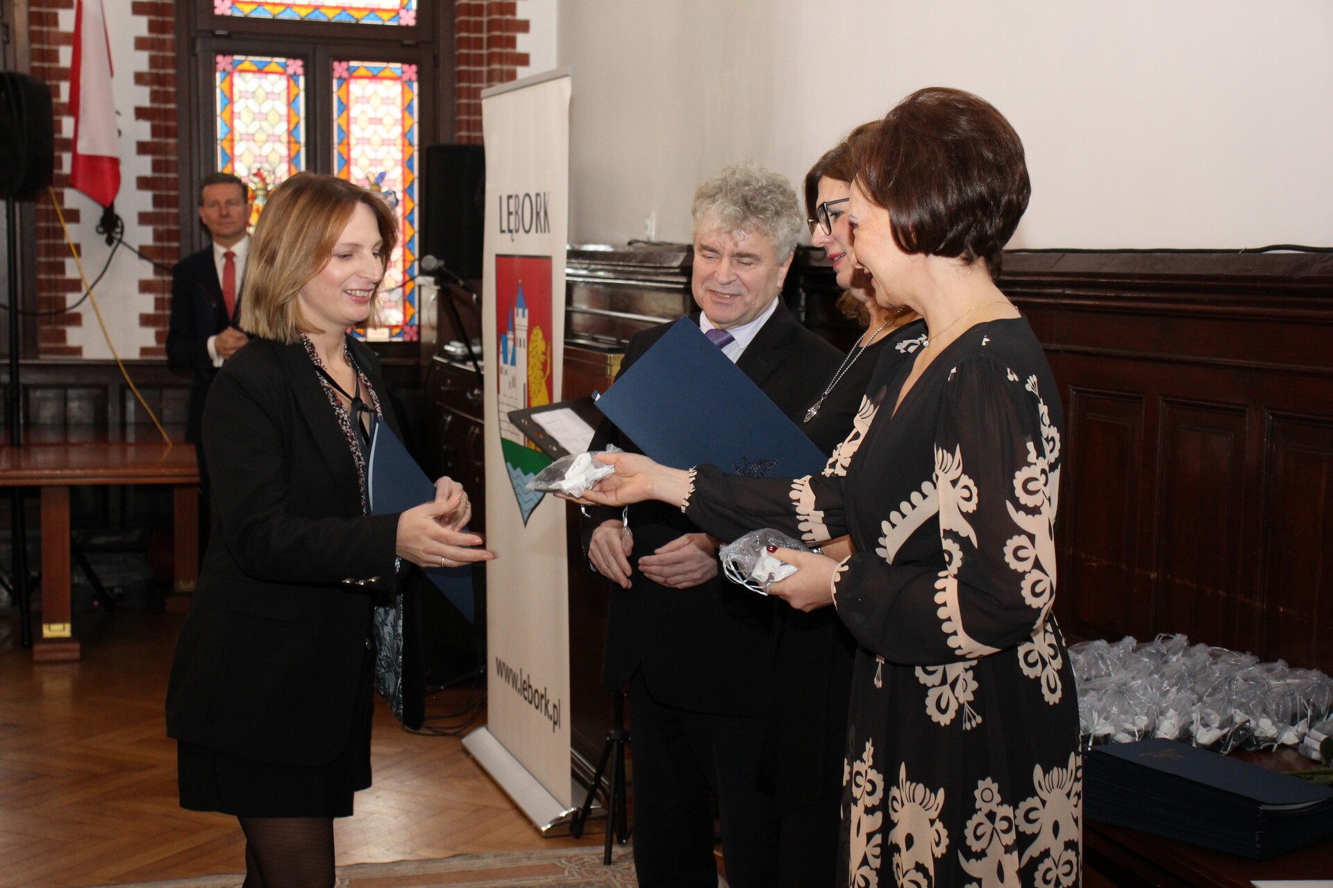 Oprawę muzyczną z pięknym śpiewem zapewniła Iwona Witke, która swoim występem zachwyciła uczestników spotkania. Burmistrz Miasta Witold Namyślak złożył pracownikom pomocy społecznej życzenia i podziękowania za zaangażowanie w pomoc osobom potrzebującym. Z kolei kierownik Miejskiego Ośrodka Pomocy Społecznej w Lęborku Elżbieta Michalska przypomniała historię lęborskiego MOPS-u i realizowanych przez niego zadań.