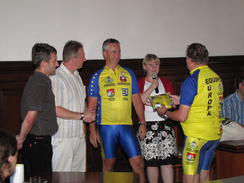 W środę 21 lipca do Lęborka zawitali kolejni przedstawiciele Ekipy Europa - rowerzyści z miasta Lauenburg, na czele z szefem drużyny Kurtem Schlicht. Ta grupa odwiedziła nasze miasto w ramach swojego kilkudniowego pobytu w Czersku. Tego też dnia obie grupy rowerzystów spotkały się w lęborskim ratuszu z Włodzimierzem Klatą - Burmistrzem Miasta oraz Alicją Zajączkowską Zastępcą Burmistrza.