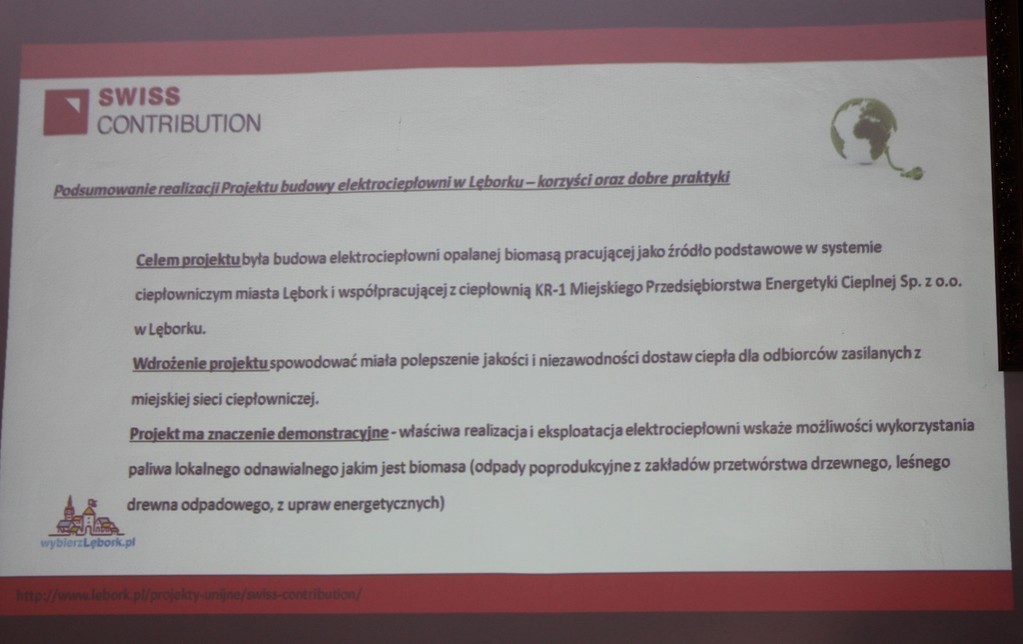 17 stycznia br. w Sali Rajców Urzędu Miejskiego odbyła się konferencja podsumowującą projekt budowy elektrociepłowni opalanej biomasą. Przedstawiono na niej korzyści oraz dobre praktyki wynikające z ponad rocznej eksploatacji instalacji. Specjaliści często przywoływali aspekt ekologiczny. Dzięki budowie nowoczesnego i ekologicznego obiektu Lębork znalazł się w awangardzie miast skutecznie walczących ze smogiem.