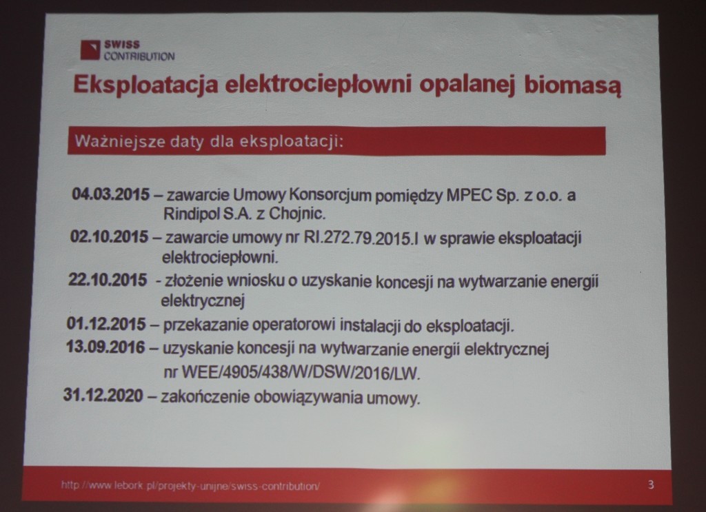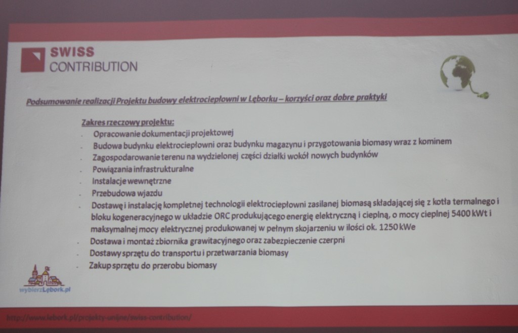 Beltrani Guido, Dyrektor Biura Szwajcarsko-Polskiego Programu Współpracy przy Ambasadzie Szwajcarii w Polsce zwrócił uwagę na trzy wyjątkowe cechy charakteryzujące lęborską inwestycję. Po pierwsze jest to projekt przyjazny środowisku, który skupia się na wytwarzaniu ciepła i energii elektrycznej co jest szczególnie ważne w chwili, gdy tyle w Polsce mówi się o zagrożeniu smogiem i zanieczyszczeniu środowiska. Po drugie projekt jest innowacyjny, a wdrożona technologia to najnowocześniejsze rozwiązania na świecie. Pogratulował też Burmistrzowi Lęborka i jego zespołowi za odwagę i nowatorskie spojrzenie, które przyniosły wspaniały efekt. Trzecim elementem na który gość z Szwajcarii zwrócił uwagę była edukacja i zaangażowanie w projekt dzieci i młodzieży dla której przygotowano w szkołach kampanię informacyjną o oszczędzaniu energii czy zasadach działania energetyki odnawialnej.