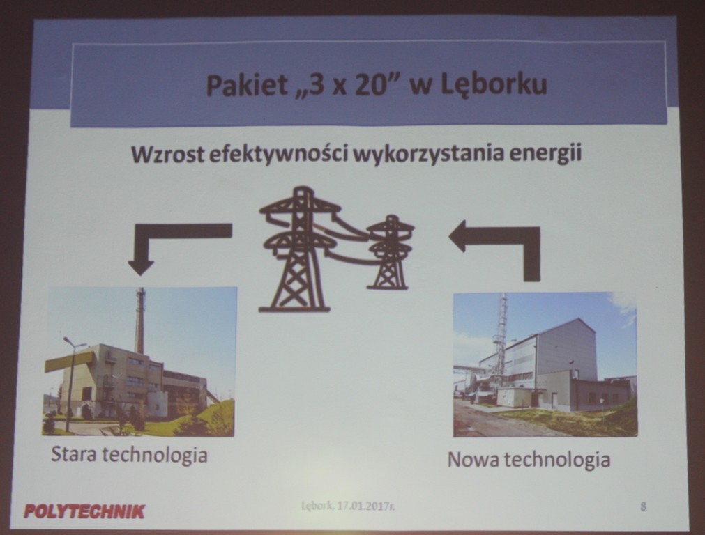 Marian Sobieraj, prezes POLYTECHNIK Polska Sp. z.o.o, wykonawcy elektrociepłowni zwrócił uwagę, że inwestycja dobrze wpisuje się w pakiet energetyczno-klimatyczny tzw. 3x20. Do 2020 roku Polska zobowiązana jest o 20% obniżyć emisję gazów cieplarnianych, zwiększyć o 20% efektywność wykorzystania energii, a także zwiększyć (w przypadku Polski do 15%) udział energii z odnawialnych źródeł energii. Wybudowana w Lęborku elektrociepłownia wychodzi naprzeciwko nowym trendom energetyki rozproszonej, czyli wytwarzania energii w małych jednostkach wytwórczych położonych w bezpośrednim sąsiedztwie odbiorców. Korzyści płynące dla naszego miasta z tak przyjętej koncepcji to własne źródło energii cieplnej i elektrycznej, stałe dochody ze sprzedaży nadwyżek energii elektrycznej, niezależność od centralnego planowania i dysponowania mocą i poprawa bezpieczeństwa energetycznego.