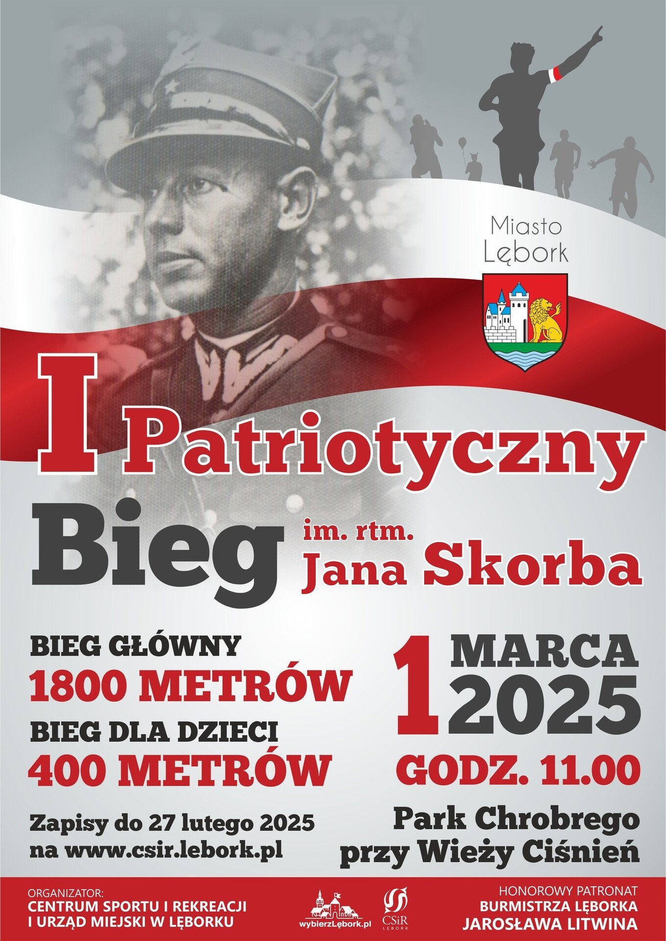 Wydarzenie odbędzie się 1 marca br., ze startem i metą przy głównym wejściu na Wieżę Ciśnień w Parku im. Bolesława Chrobrego. To wydarzenie patriotyczno - rekreacyjne objął honorowym patronatem burmistrz Lęborka Jarosław Litwin.