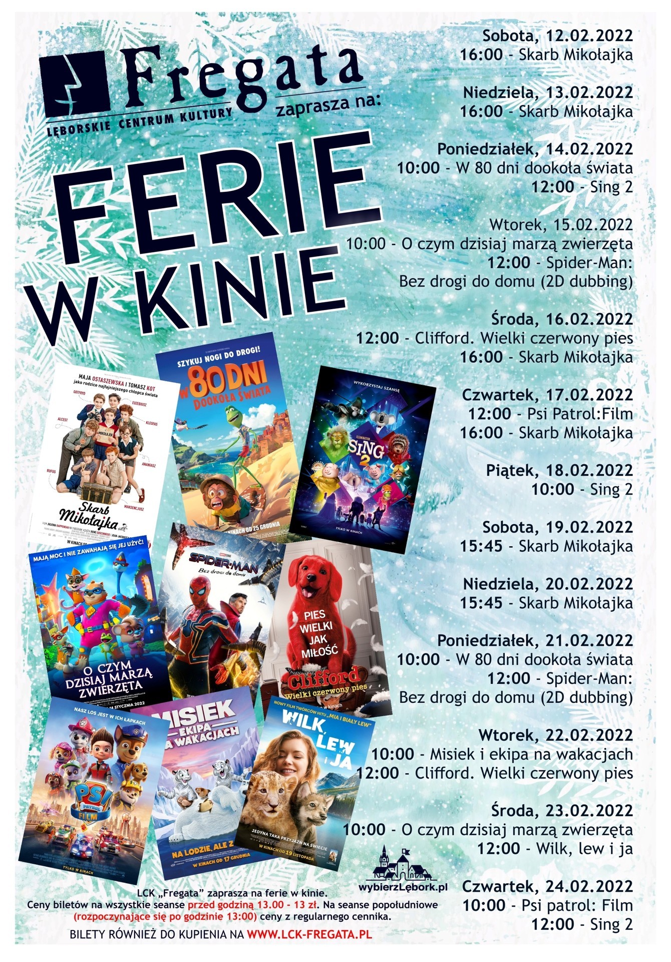 LCK „Fregata” zaprasza na ferie w kinie. Cena biletów na wszystkie seanse rozpoczynające się przed godziną 13:00 wynosi 13 złotych. Na seanse popołudniowe (rozpoczynające się po godzinie 13:00) ceny z regularnego cennika. Wszystkie wyświetlane w trakcie ferii filmy dla młodszych widzów są dubbingowane.