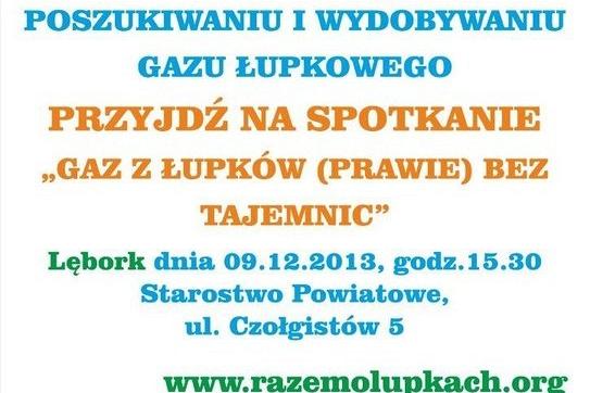 Lokalny Komitet Dialogu zaprasza na kolejne spotkanie dot. poszukiwania i wydobywania gazu łupkowego. Najbliższe spotkanie informacyjne odbędzie się w poniedziałek 9 grudnia br. o godz. 15.30 w Starostwie Powiatowym w Lęborku przy ul. Czołgistów 5
