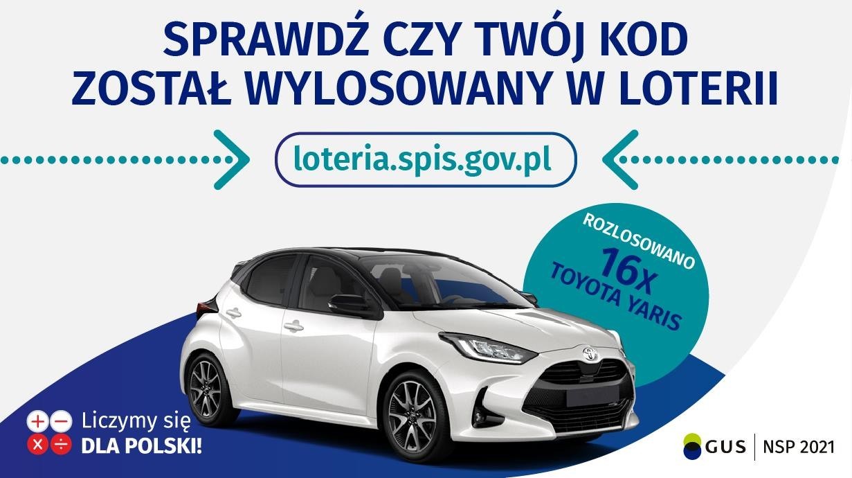 14. lipca o godzinie 12:00 odbyło się finałowe losowanie loterii Narodowego Spisu Powszechnego. Wzięło w nim udział ponad milion dwieście zarejestrowanych uczestników, wśród których rozlosowano 16 samochodów osobowych Toyota YARIS, po jednym w każdym województwie.
