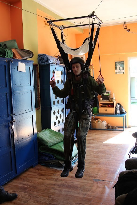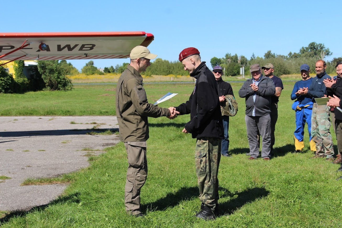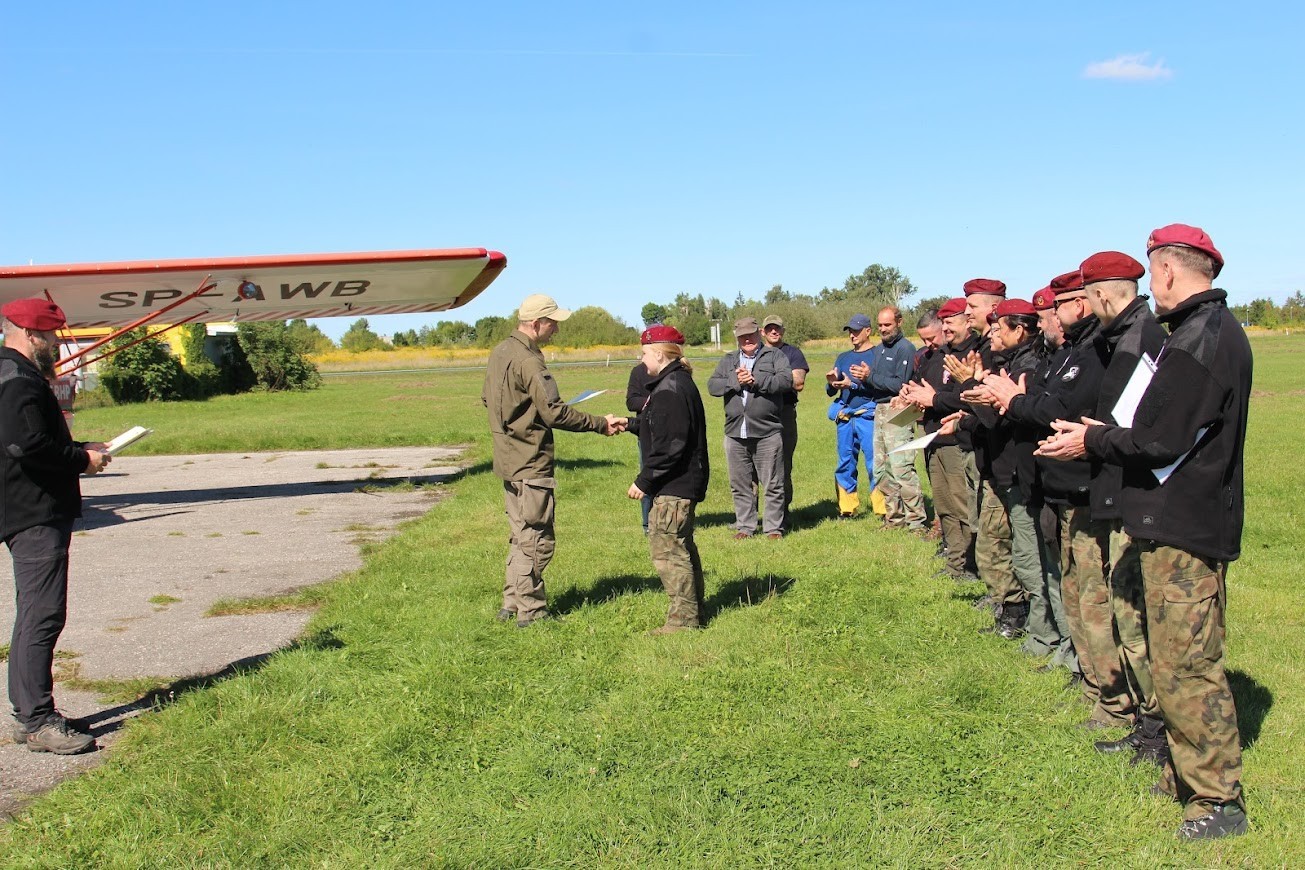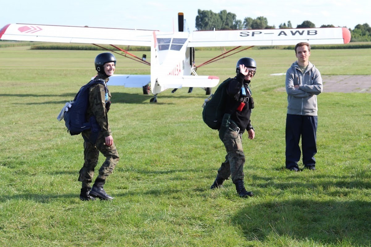 Po przeszkoleniu teoretycznym i praktycznym zakończonym egzaminem przyszedł czas na wykonanie trzech skoków spadochronowych, czyli wyskoczenie z samolotu JAK 12 na wysokości 1000m.