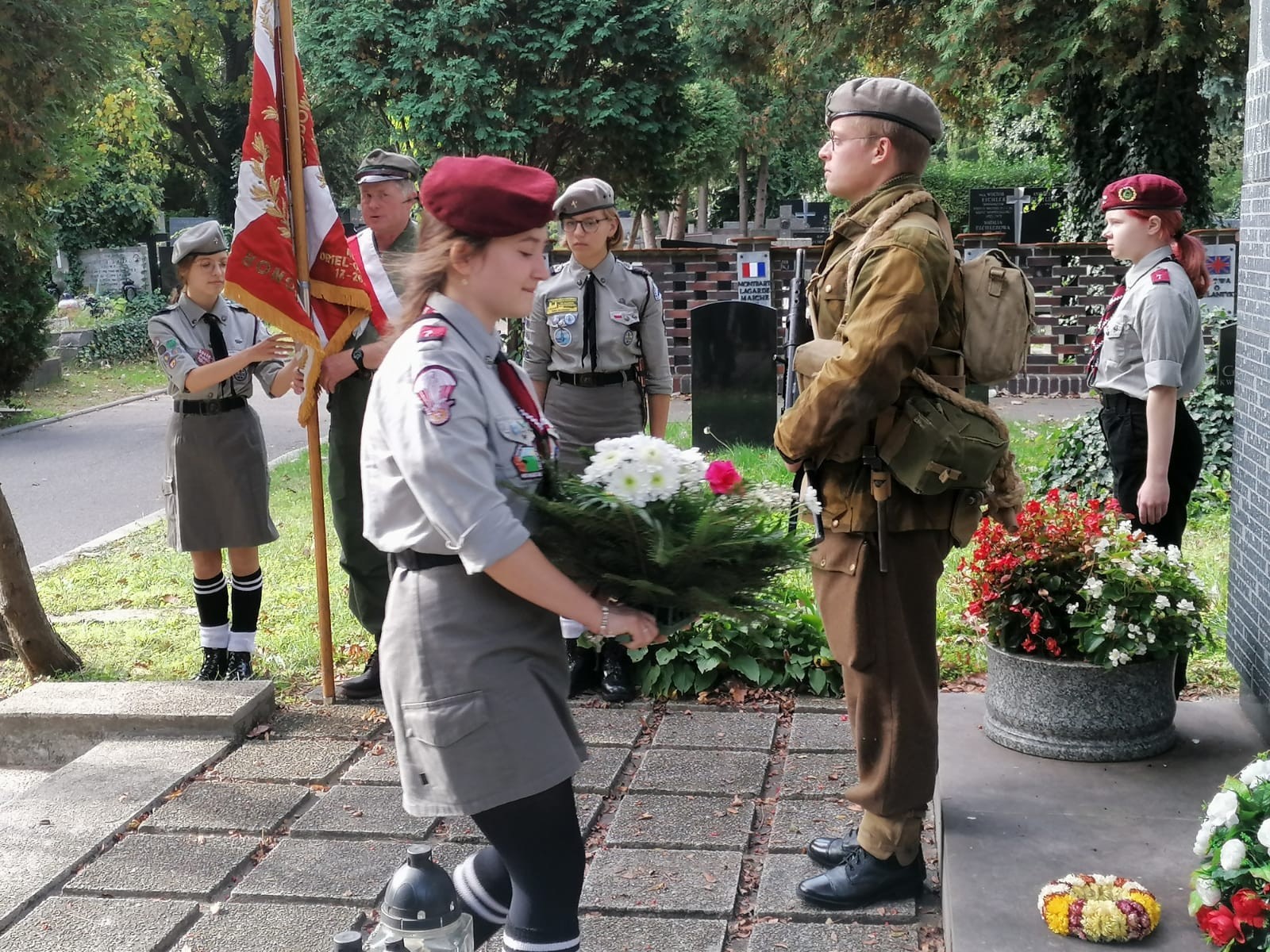 Harcerze posprzątali otoczenie pomnika oraz złożyli kwiaty na grobie swojego patrona generała Stanisława Sosabowskiego. Poczty sztandarowe, składanie kwiatów i minuta ciszy… Niestety już bez weteranów.