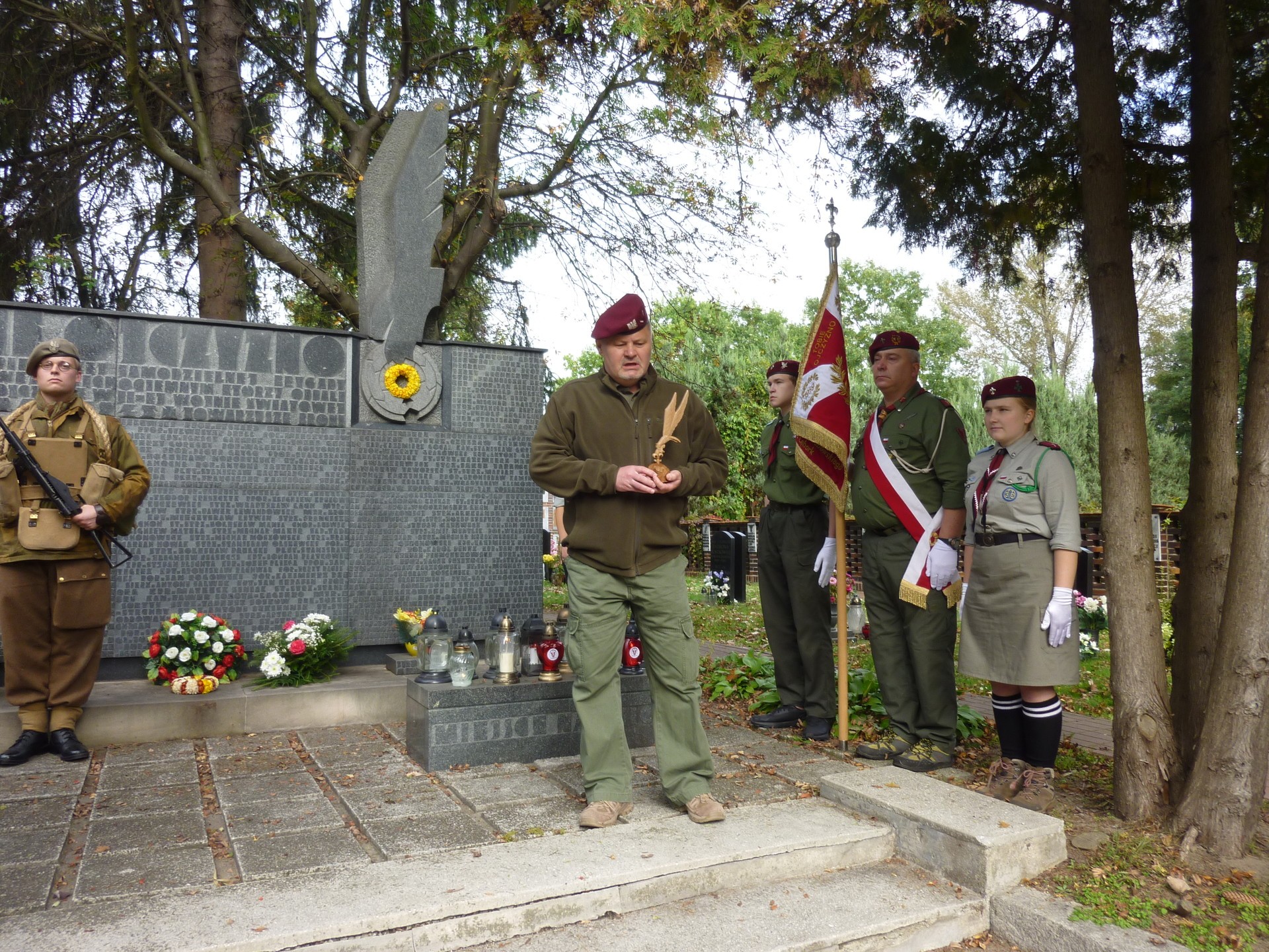 Wieczorem harcmistrz Krzysztof Siwka – kierownik wyprawy, opowiedział młodszym harcerzom o tym, jak co roku we wrześniu, w latach 1983 – 1989, w rocznicę bitwy pod Arnhem, przyjeżdżał z lęborskimi harcerzami na Cmentarz Wojskowy na Powązkach. Wspólnie z harcerzami z różnych stron Polski, z drużyn noszących imię gen. Sosabowskiego, albo Brygady Spadochronowej spotykali się z weteranami na Powązkach. Zaciągali warty honorowe, zapalali znicze na grobie swojego patrona generała Stanisława Sosabowskiego, słuchali opowieści legendarnych weteranów Brygady oraz Cichociemnych. Były to nieoficjalne, skromne, ale wzruszające uroczystości.