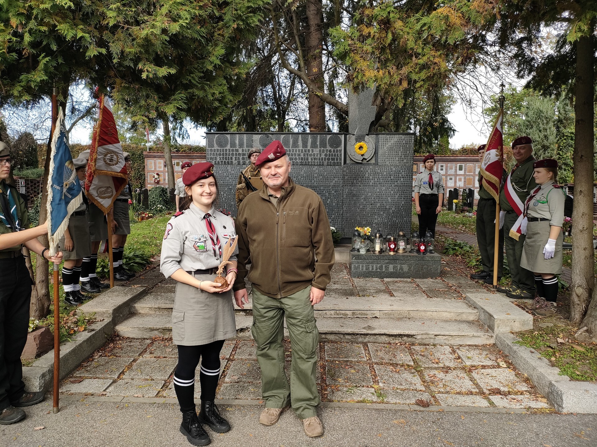 Przyjaciel naszych harcerzy Pan Leszek z Bydgoszczy wręczył drużynowej, Nikoli Harackiewicz statuetkę Harcerskiego Znaku Spadochronowego w podziękowaniu za dotychczasową służbę w kultywowaniu pamięci po spadochronowych weteranach.