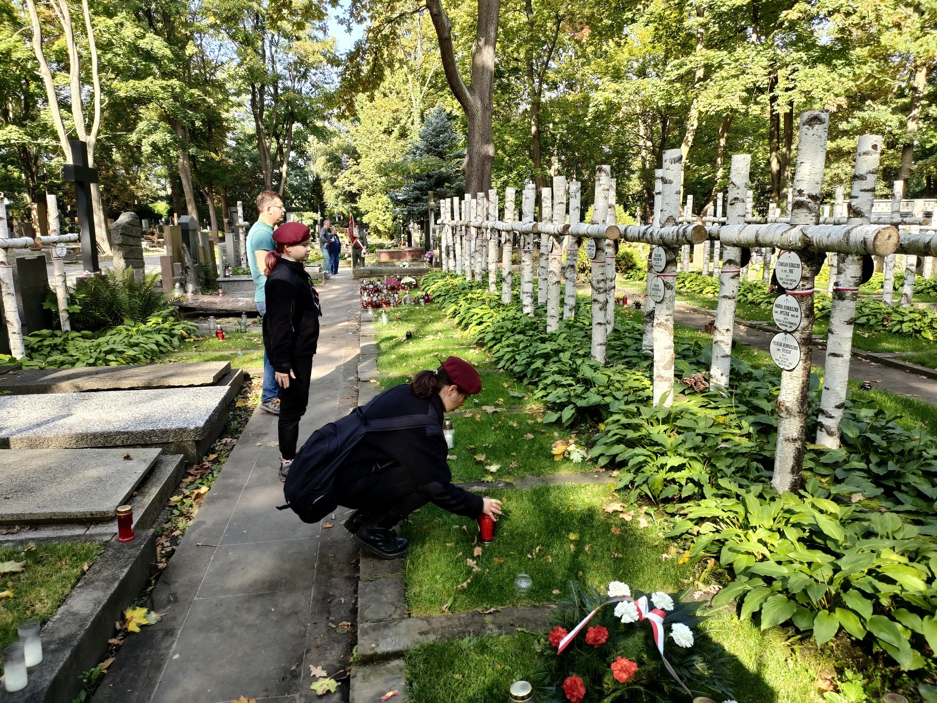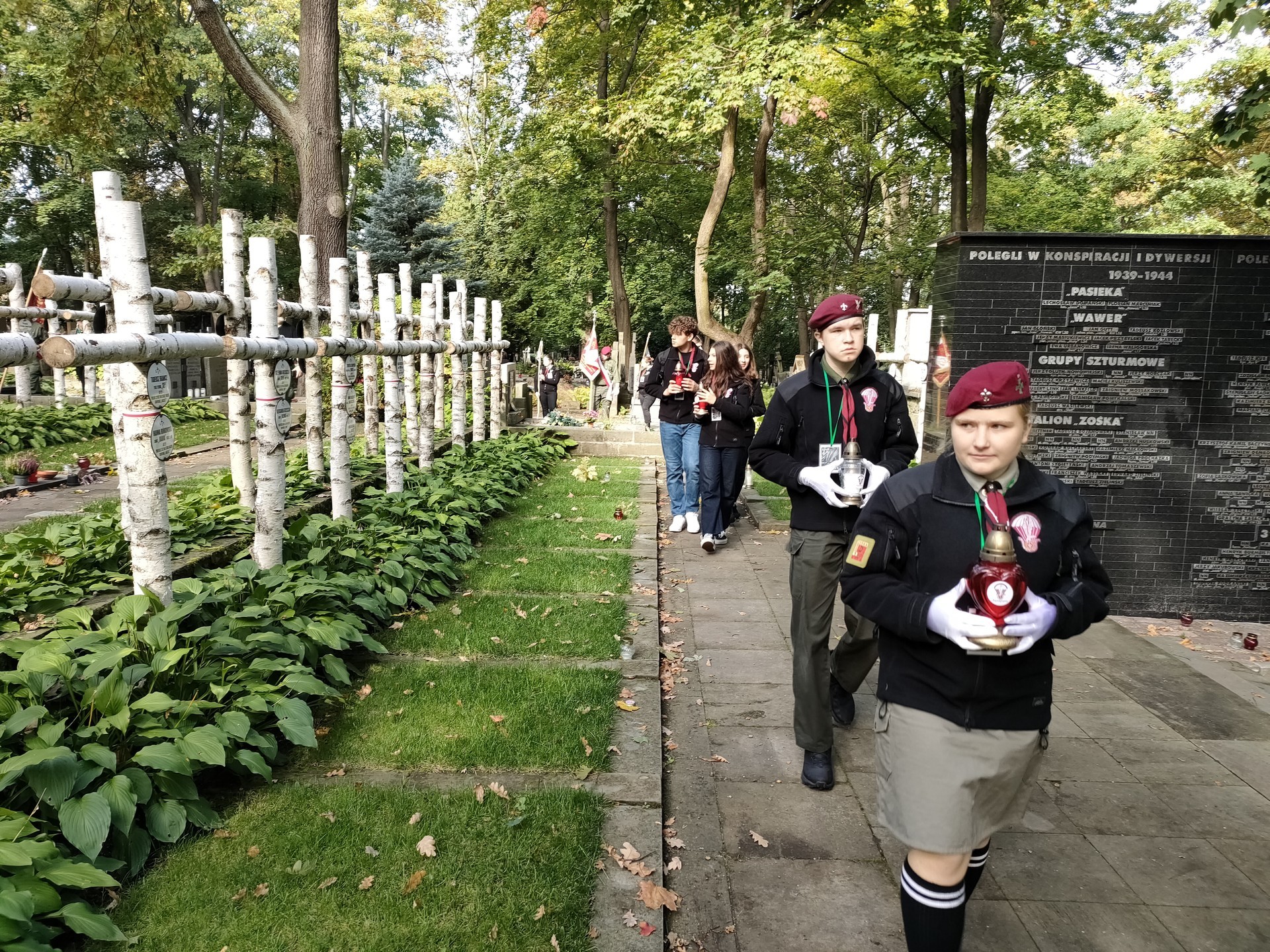 Po ponad trzydziestu latach ponownie młodzi lęborscy harcerze i instruktorzy, którzy przyjeżdżali tutaj w latach 80-tych, przyjechali na Powązki. Przybyli także harcerze ze Skawiny.