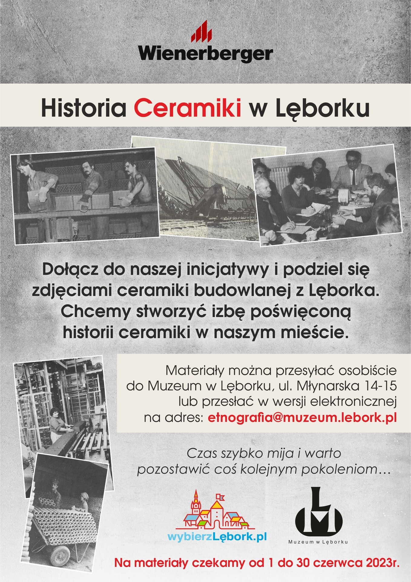 Stąd apel i prośba do Was: jeżeli Wy, Wasi znajomi, sąsiedzi, rodzina jesteście w posiadaniu starych zdjęć przedstawiających zakłady ceramiki budowlanej w Lęborku, ich pracowników przy pracy etc. i jeżeli jesteście gotowi się nimi podzielić to prosimy o dostarczenie zdjęć (w różnej formie) w celu wykonania kopii.
