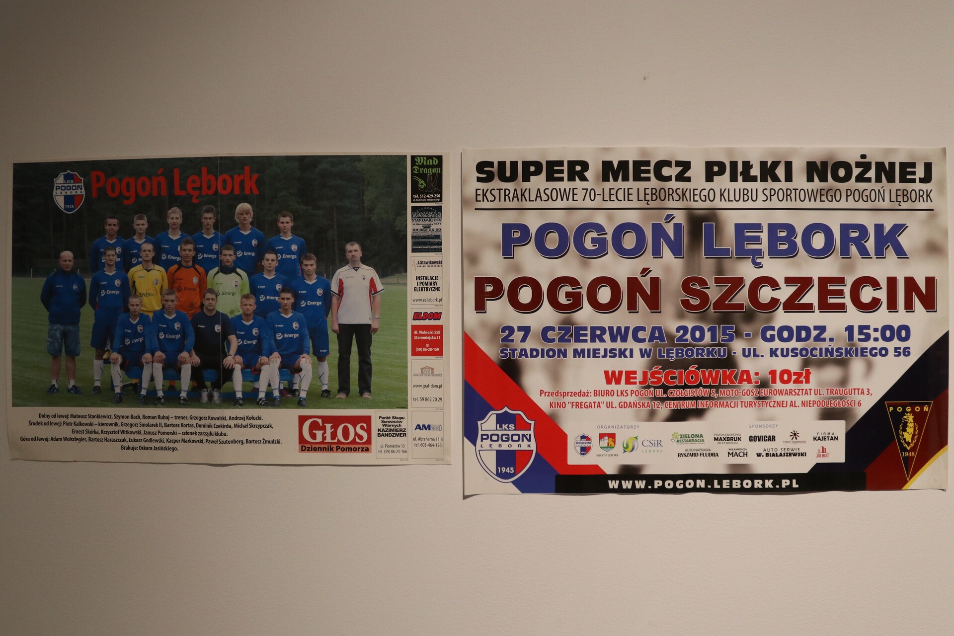 Z okazji 80-lecia Lęborskiego Klubu Sportowego Pogoń otwarta została wystawa historyczna w Wieży Ciśnień. Wystawę zainaugurowali dyrektor Muzeum w Lęborku Mariola Pruska, działacz piłkarski Janusz Pomorski i burmistrz miasta Jarosław Litwin, który podzielił się pamiątkami związanymi z Pogonią, które zaczął zbierać jako mały chłopiec.