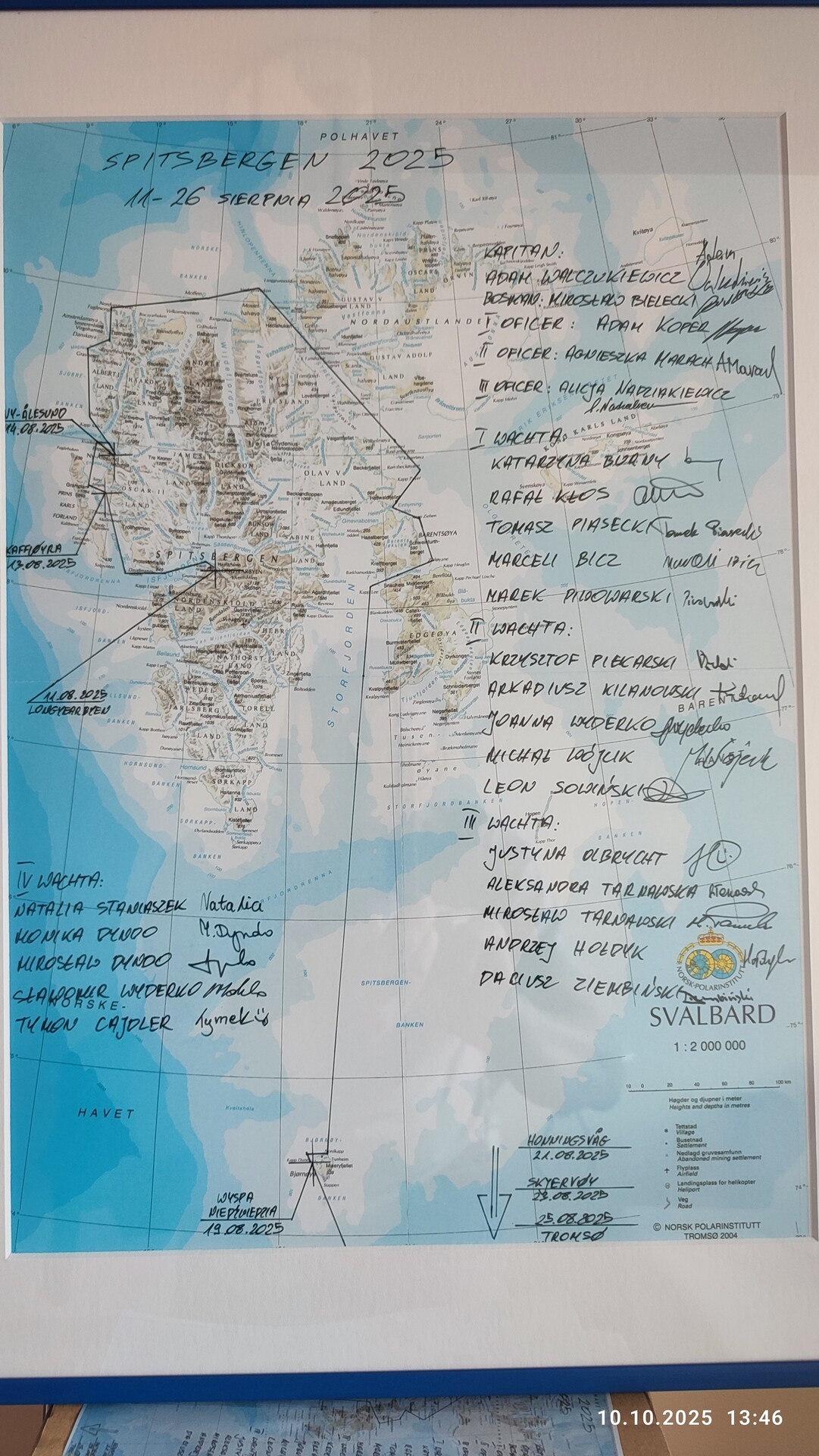 Etap na legendarny Spitsbergen rozpoczął się 12 sierpnia 2025 r. o godz. 22.30. W późnych godzinach nocnych 24 sierpnia 2025 roku STS "Generał Zaruski" zacumował w porcie w Tromsø - po 12 dniach żeglugi z Longyearbyen. Podczas jubileuszowego rejsu „Zaruski” opłynął Spitsbergen trasą przez cieśninę Hinlopen, wzdłuż wschodniego wybrzeża tej największej wyspy archipelagu Svalbard. Tym samym załoga "Generała Zaruskiego" spełniła marzenie kapitana Andrzeja Rościszewskiego, który dowodził statkiem podczas wyprawy na Spitsbergen przed 50-laty. Pół wieku później na tym samym statku opłynięto arktyczną wyspę, odwiedzając miejsca, które robią ogromne wrażenie - lodowce, fiordy, stacje badawcze, miejsca pamięci, mierząc się z różnymi wyzwaniami - mgły, silne prądy, dryfujące kry. Załogę rocznicowej wyprawy stanowili członkowie w wieku od 18 do 70 lat, o zróżnicowanym doświadczeniu, od nowicjuszy po doświadczonego w rejsach polarnych, kapitana jachtowego Adama Walczukiewicza.