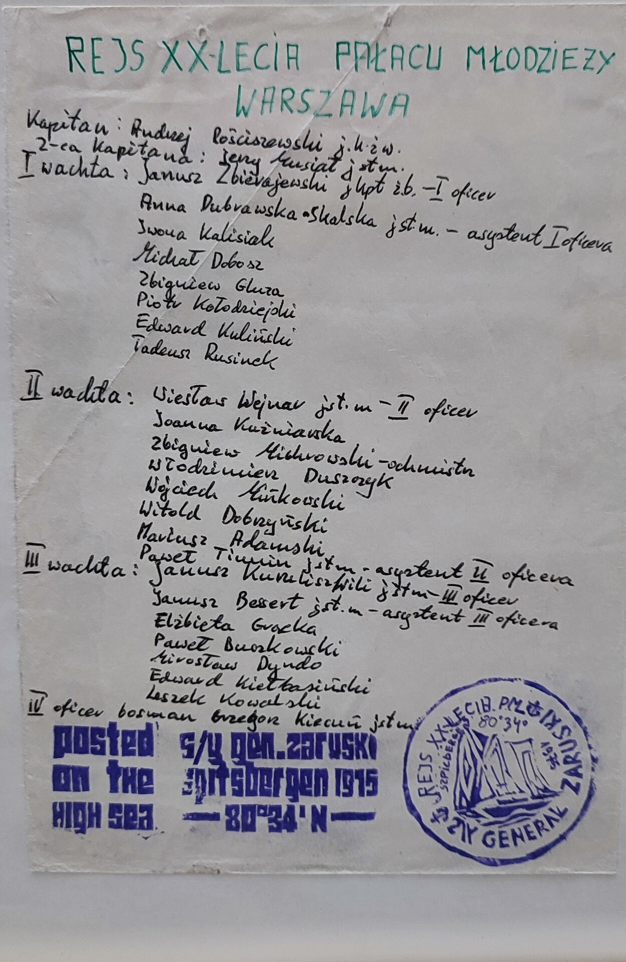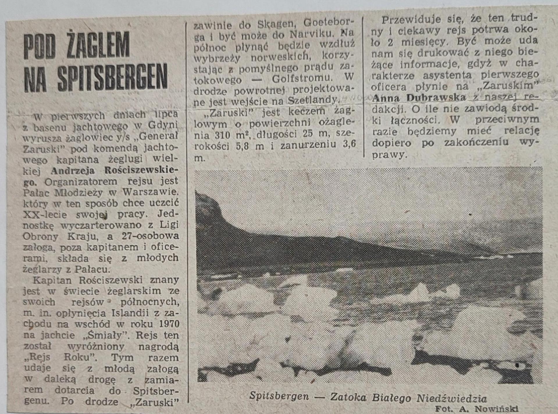 Wyprawa żaglowca na Spitsbergen w 1975 roku była pierwszym w historii polskiego żeglarstwa polarnego przedsięwzięciem tego typu. Dowódcą rejsu był kapitan Andrzej Rościszewski, a załogę stanowili młodzi żeglarze z Pałacu Młodzieży w Warszawie, którzy przez rok przygotowywali się do wyprawy – uczestnicząc w szkoleniach takielarskich i bosmańskich oraz odbywając rejs kwalifikacyjny jesienią 1974 roku.