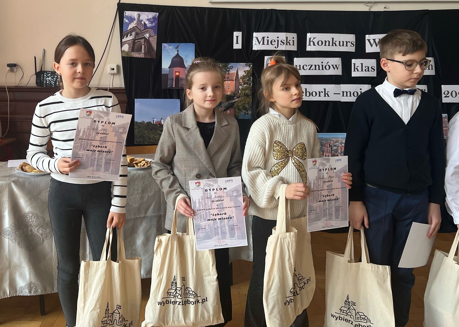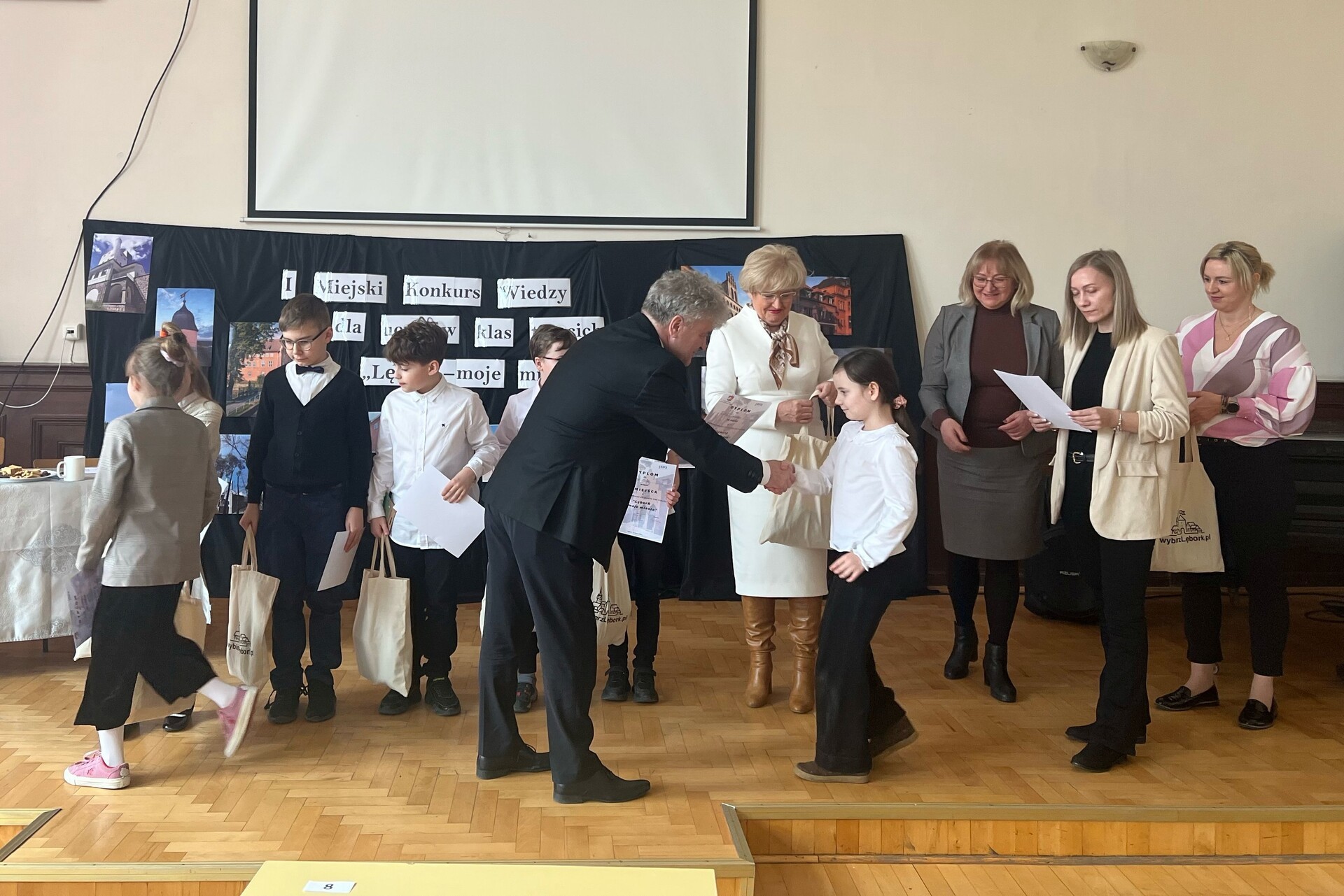 Swoją wiedzę o Lęborku w konkursie sprawdzili uczniowie ze szkół podstawowych nr 3, 7 i 8 wyłonieni w drodze szkolnych eliminacji. Nagrodzeni uczniowie otrzymali voucher do sklepu "Empik", słodycze oraz gadżety ufundowane przez Urząd Miejski w Lęborku: