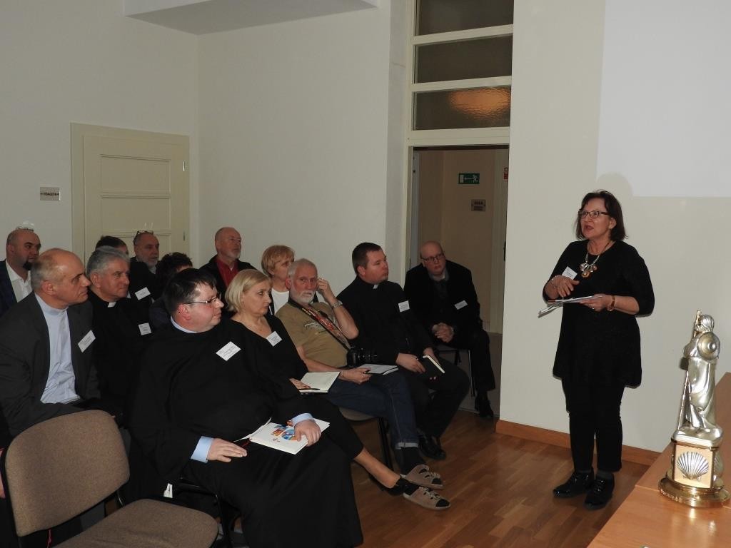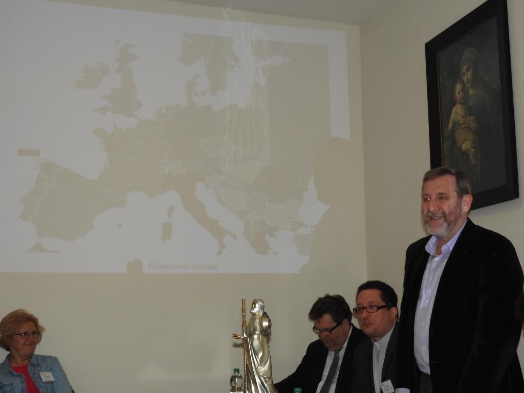 Cieszy, że w gronie podmiotów i osób zaangażowanych w dobrym funkcjonowaniem Camino oraz wspieraniem caminowiczów była liczna reprezentacja związana z Pomorską Droga św. Jakuba (PDŚJ), w tym ALICJA ZAJĄCZKOWSKA reprezentująca Miast Lębork, RYSZARD WENTA z ramienia Kapituły Pomorskiej Drogi św. Jakuba, o. ROMAN ZIOŁA z Sanktuarium św. Jakuba Apostoła w Lęborku, TAMARA FRĄCZKOWSKA reprezentująca Elbląski Klub Przyjaciół PDŚJ, BOŻENA WOŁOWCZYK z Urzędu Marszałkowskiego Województwa Zachodniopomorskiego oraz ks. PAWEŁ OSTROWSKI z Fundacji Szczecińska – podmiotów, które były parterami unijnego projektu rewitalizacji PDŚJ, wreszcie VIOLETTA KAZIMIERUK z leżącego na szlaku PDŚJ Smołdzina.