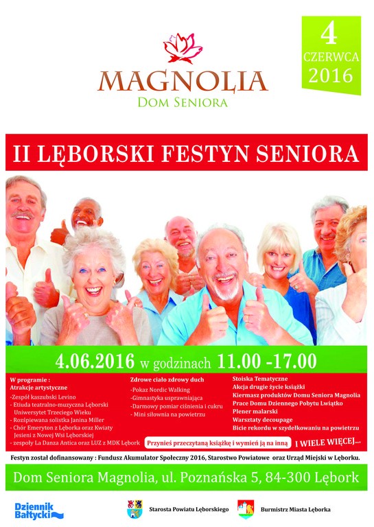 II Lęborski Festyn Seniora organizują w dniu 4 czerwca w godz. 11.00-17.00 Stowarzyszenie „Żyj dla innych” i Dom Seniora „Magnolia”.