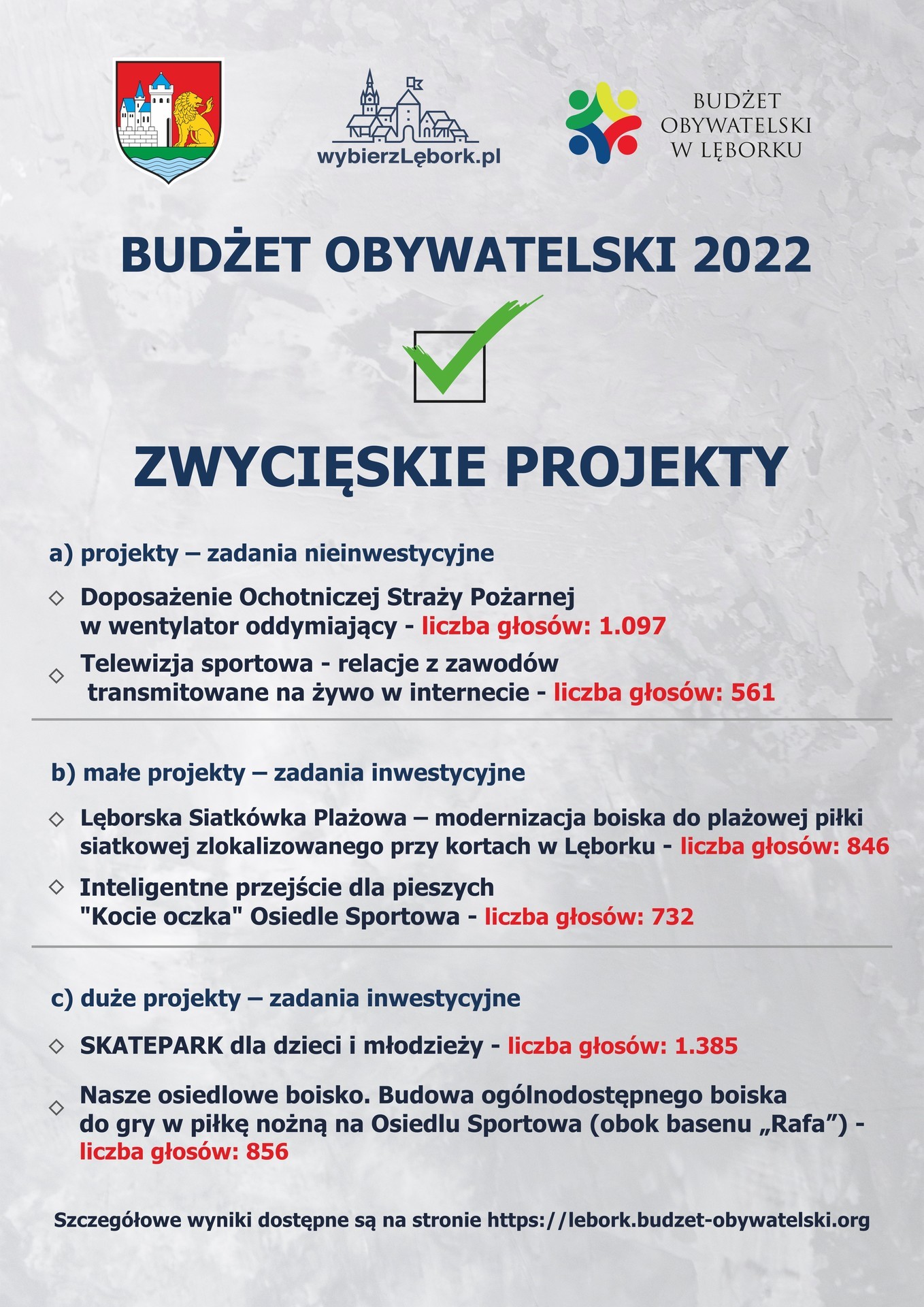 Do realizacji w ramach „Budżetu Obywatelskiego w Lęborku” na 2022 rok zakwalifikowały się następujące projekty: