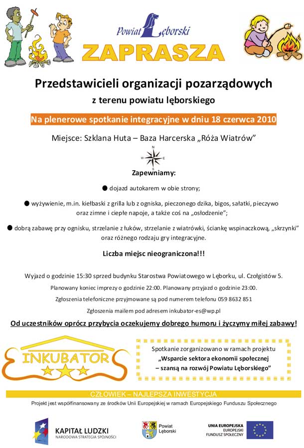 Na plenerową imprezę integracyjną w dniu 18 czerwca w Szklanej Hucie zaprasza przedstawicieli organizacji pozarządowych z powiatu lęborskiego Starostwo Powiatowe w Lęborku.