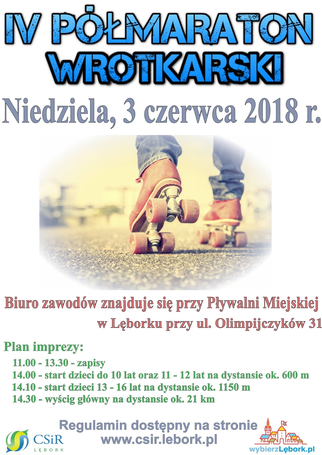 Już 3 czerwca br. w Lęborku zorganizowany zostanie IV Półmaraton Wrotkarski. Start główny przeprowadzony będzie na dystansie 21 km. Zawody dla dzieci do lat 10 oraz 11-12 lat przeprowadzone zostaną na dystansie 600 m, a dla dzieci w wieku 13-16 lat – na dystansie 1150m.