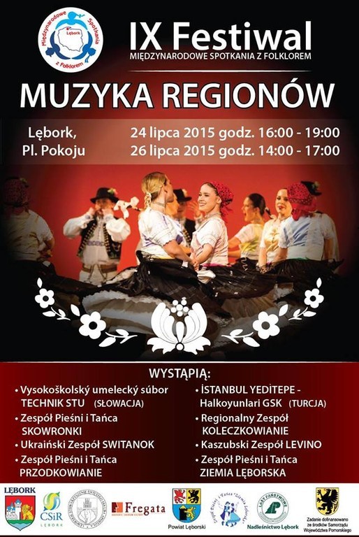 Kaszuby reprezentować będą 4 zespoły: dwa lęborskie - LEVINO i ZIEMIA LĘBORSKA oraz Przodkowianie i Koleczkowianie, wystąpi także zespół pieśni i tańca Skowronki z Podlasia, a program ukraiński zaprezentuje zespół SWITANOK. Z zagranicy przyjadą dwa zespoły: studencki Technik Stu ze Słowacji i Istambul Yedidepe - Halkoyunlari Dernegi z Turcji.