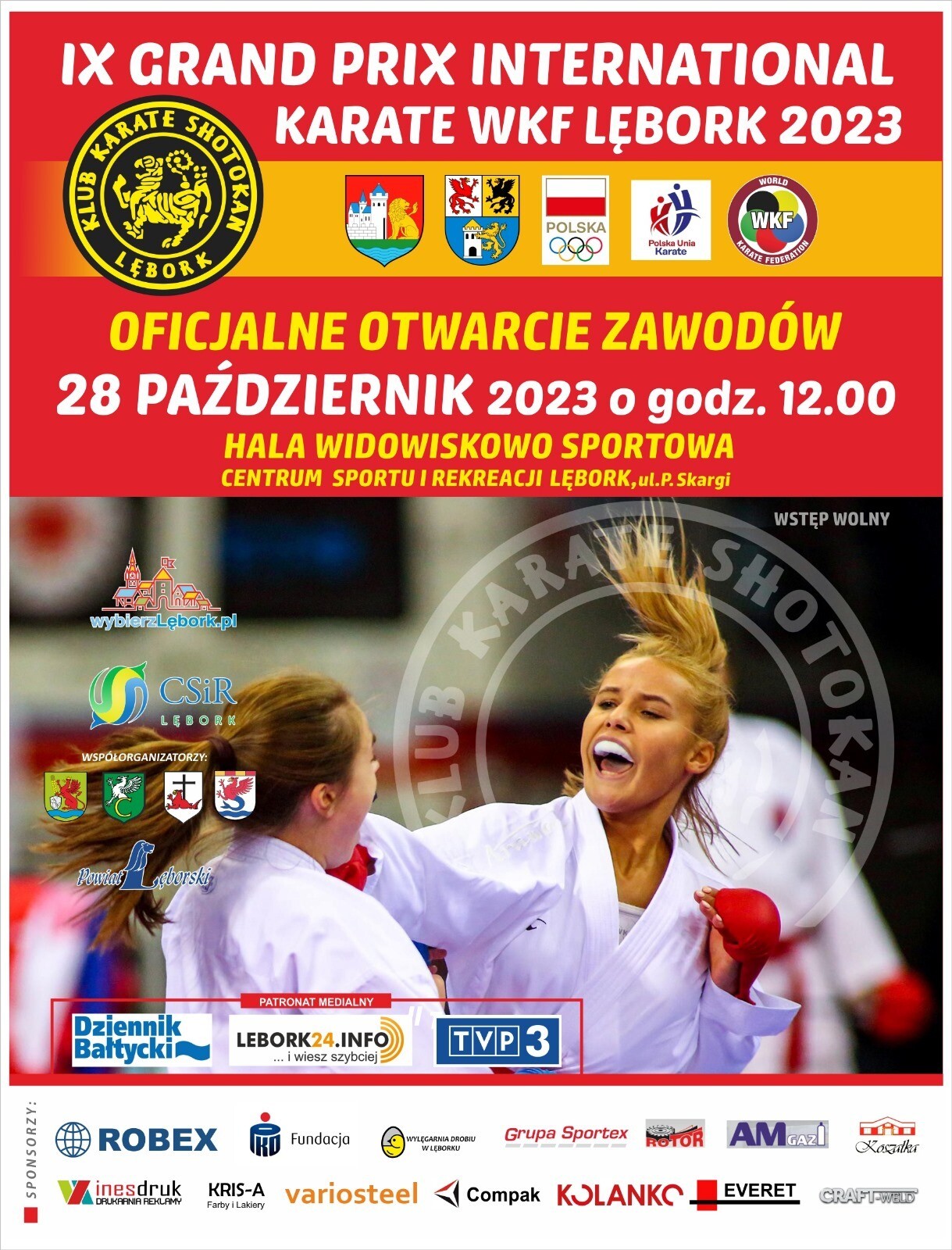 Klub Karate Shotokan w Lęborku oraz Miasto Lębork zapraszają na zawody IX Grand Prix International Karate WKF. Start zawodów w Hali Widowiskowo-Sportowej przy ul. P. Skargi 28 października 2023 o godz. 12.00.