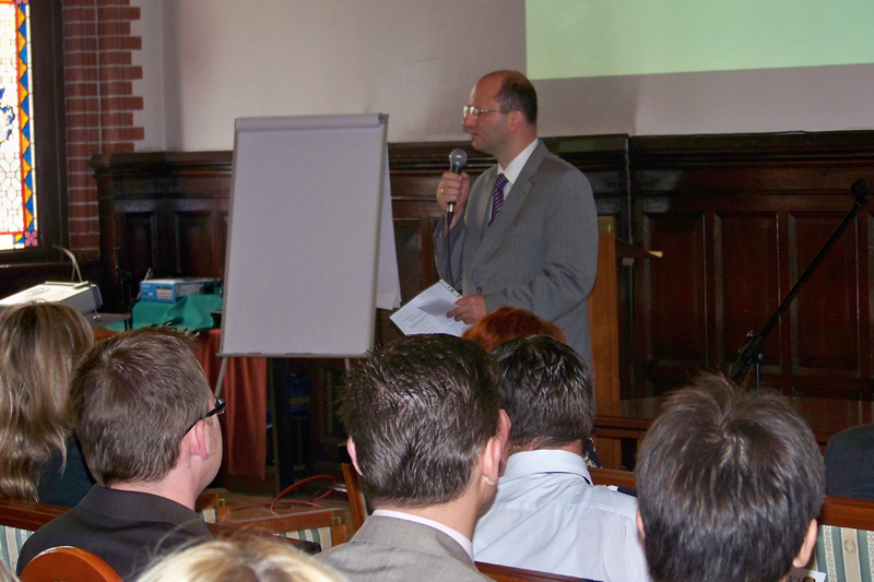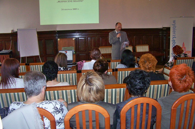 Podczas konferencji szkoleniowej "Bezpieczne Miasto" w ratuszu zorganizowanej przez Burmistrza Lęborka Włodzimierza Klatę - Szefa Obrony Cywilnej Miasta Lęborka omówiono kwestie przygotowania kadry kierowniczej i zespołów zadaniowych do działania w sytuacjach podwyższenia gotowości obronnej państwa.