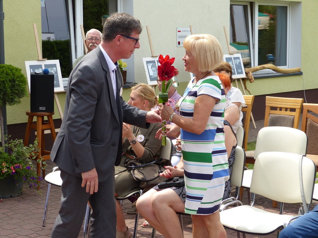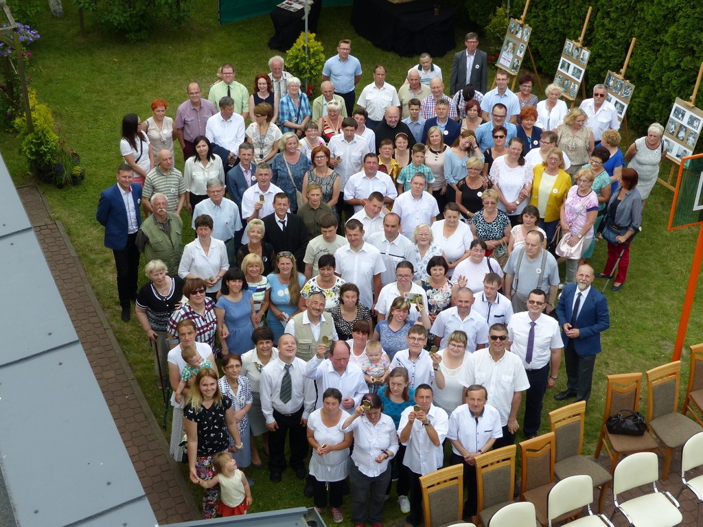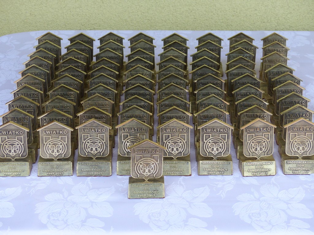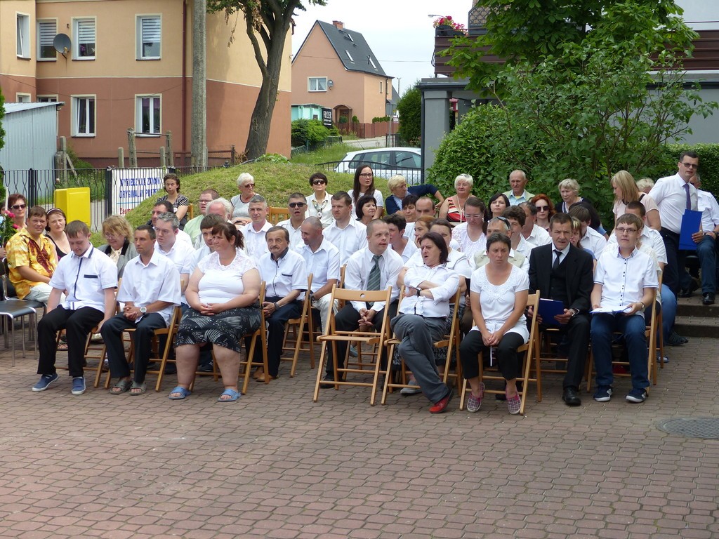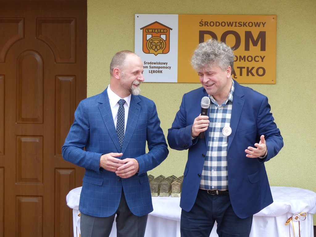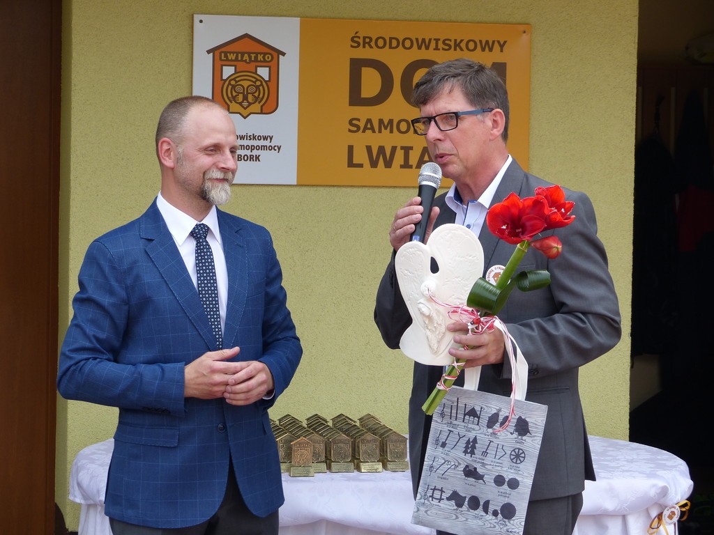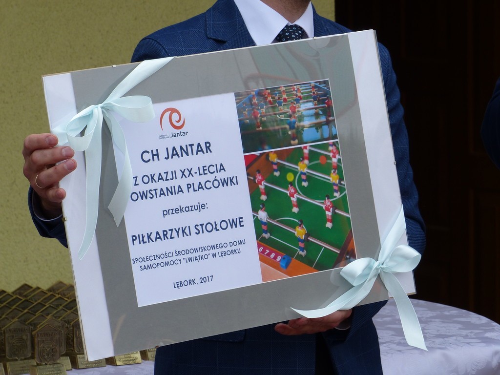 Burmistrz Lęborka Witold Namyślak, dziękując za wielką pracę i opiekę nad niepełnosprawnymi osobami, wręczył społeczności domu prezent – wycieczkę autokarową do Parku Dinozaurów w Łebie. Każdy z domowników otrzymał na pamiątkę jubileuszową statuetkę, a wszyscy mogli zostawić po sobie na pamiątkę nietypowy ślad – węzeł krzyżykowy na materiale.