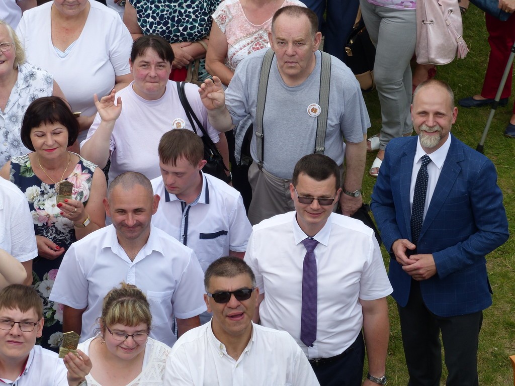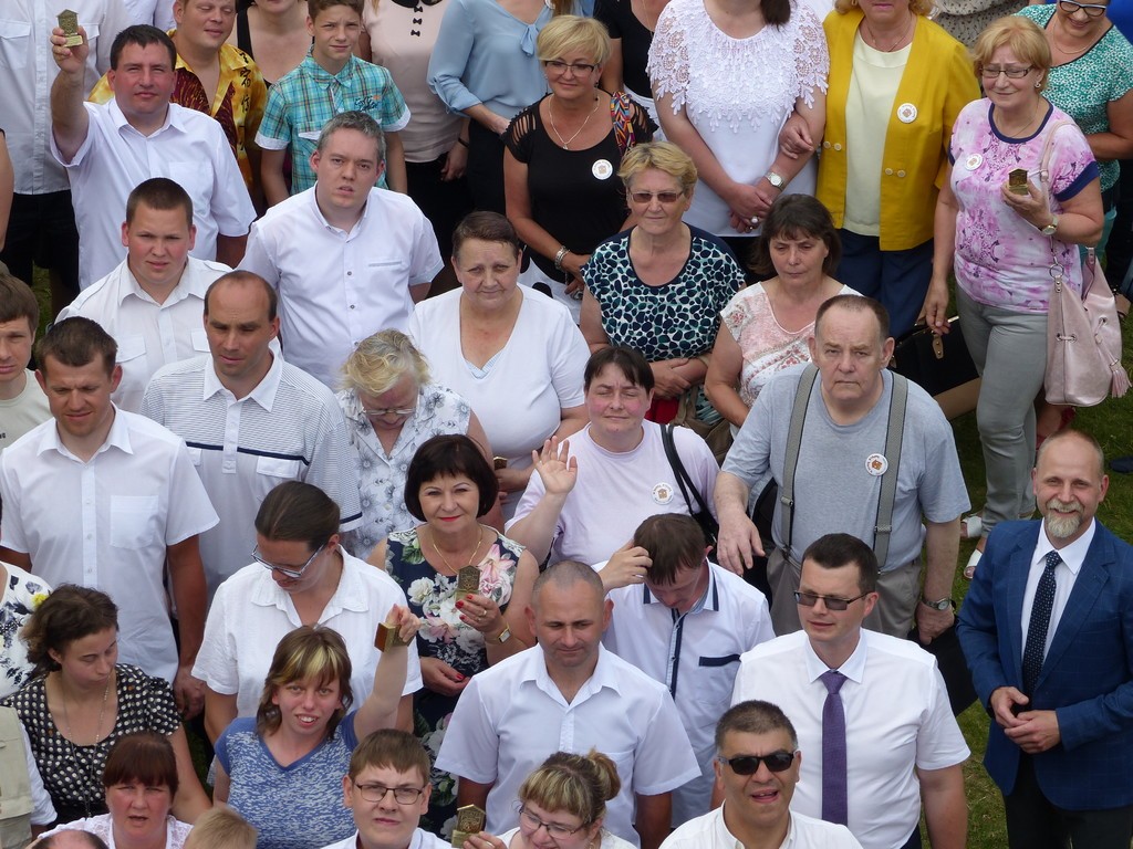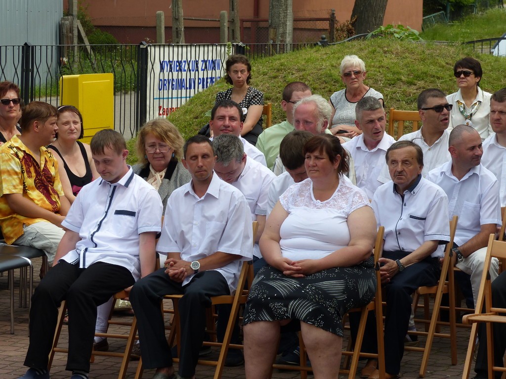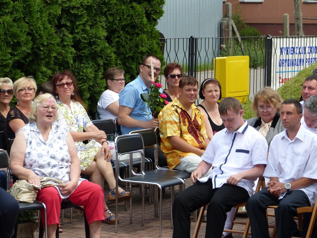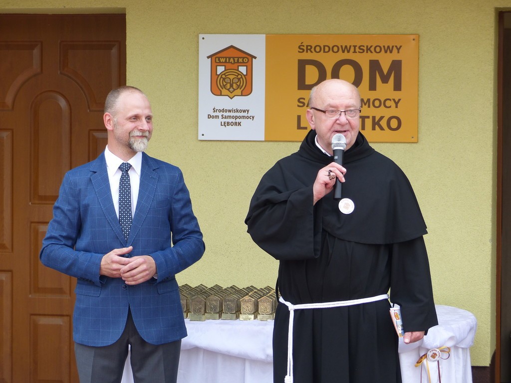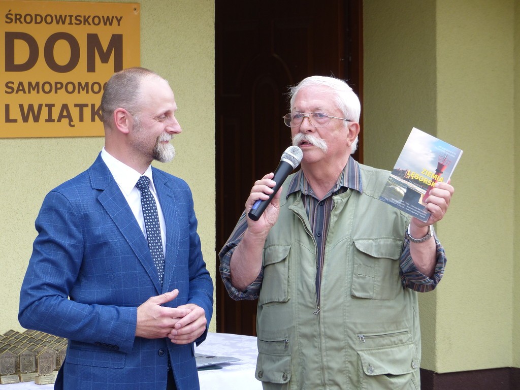 Burmistrz Lęborka Witold Namyślak, dziękując za wielką pracę i opiekę nad niepełnosprawnymi osobami, wręczył społeczności domu prezent – wycieczkę autokarową do Parku Dinozaurów w Łebie. Każdy z domowników otrzymał na pamiątkę jubileuszową statuetkę, a wszyscy mogli zostawić po sobie na pamiątkę nietypowy ślad – węzeł krzyżykowy na materiale.