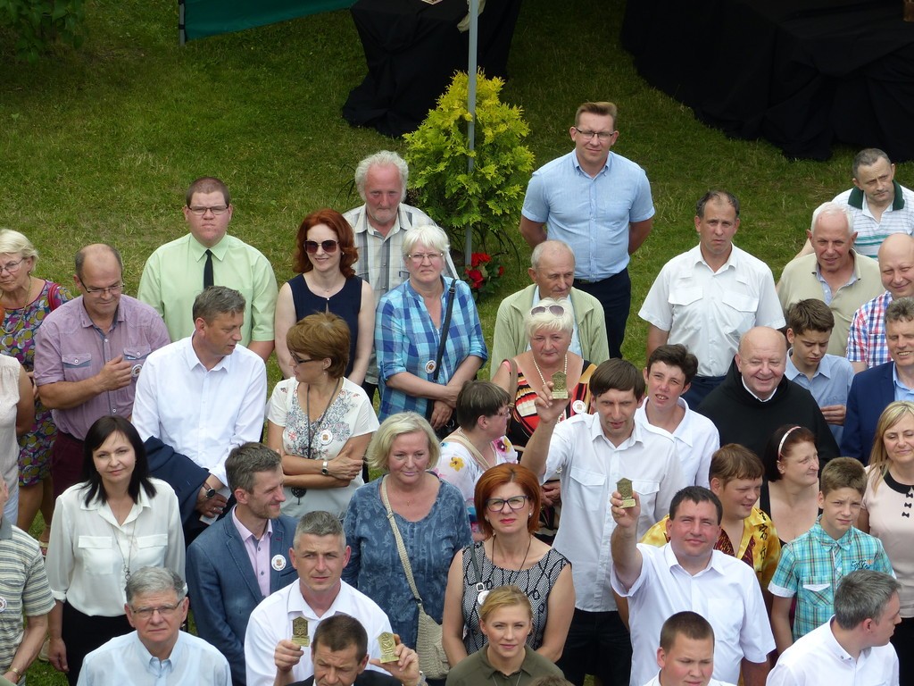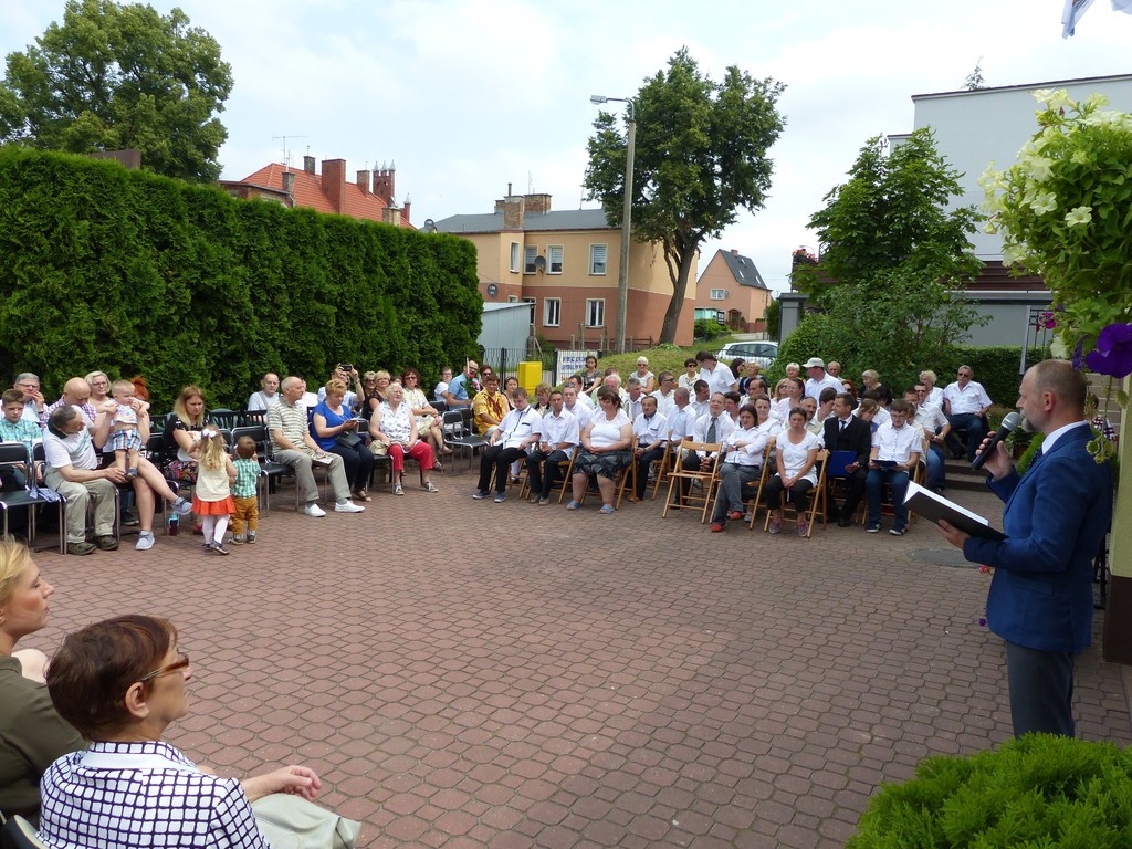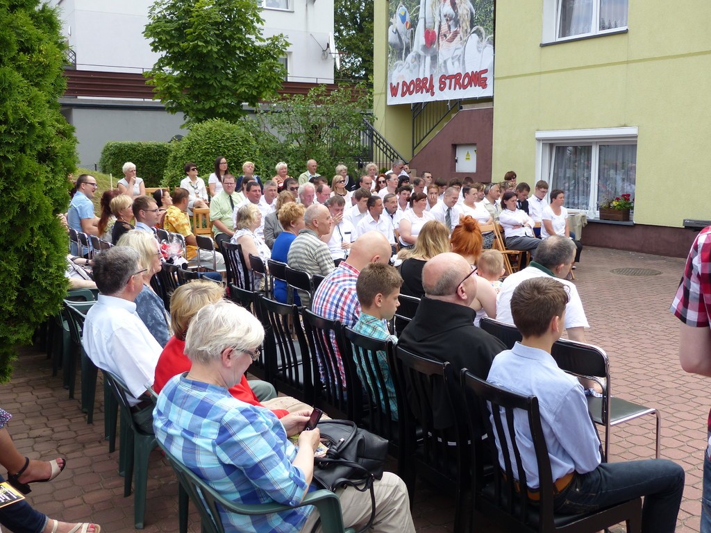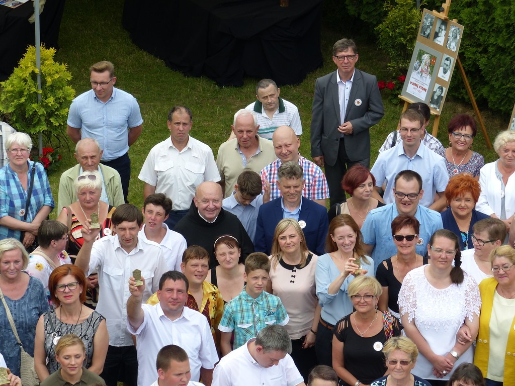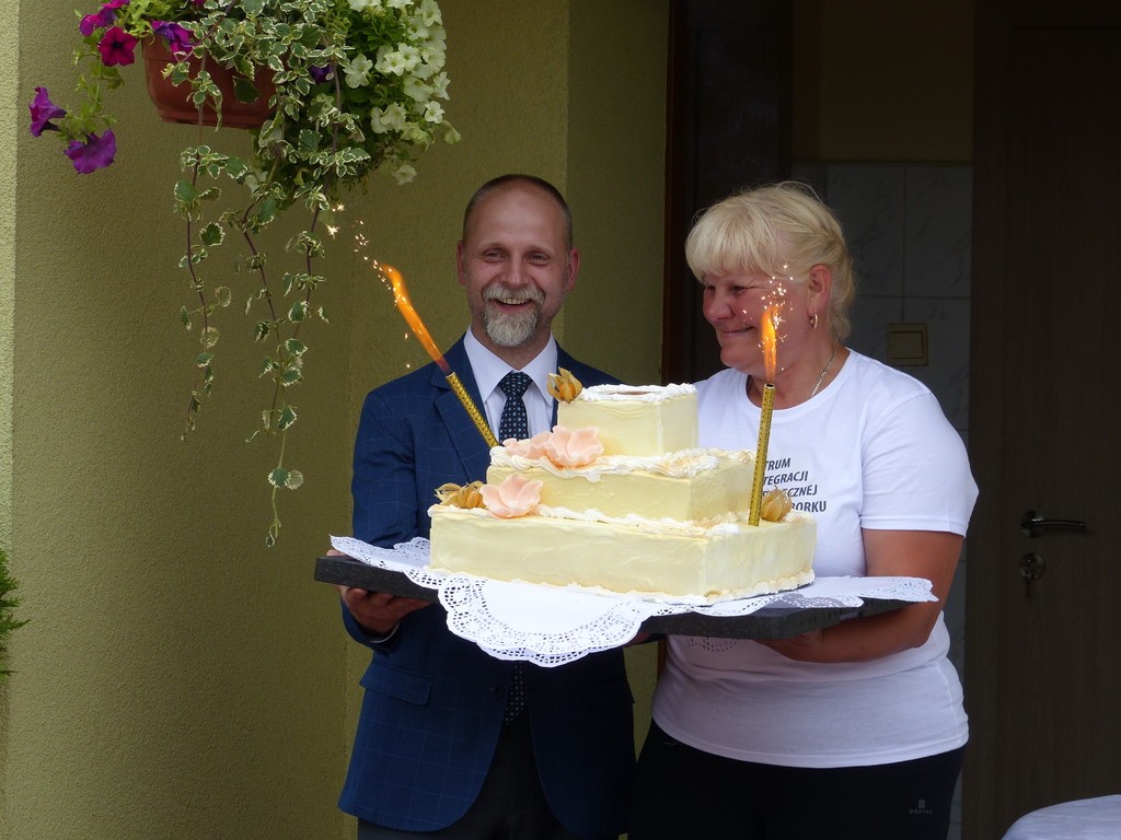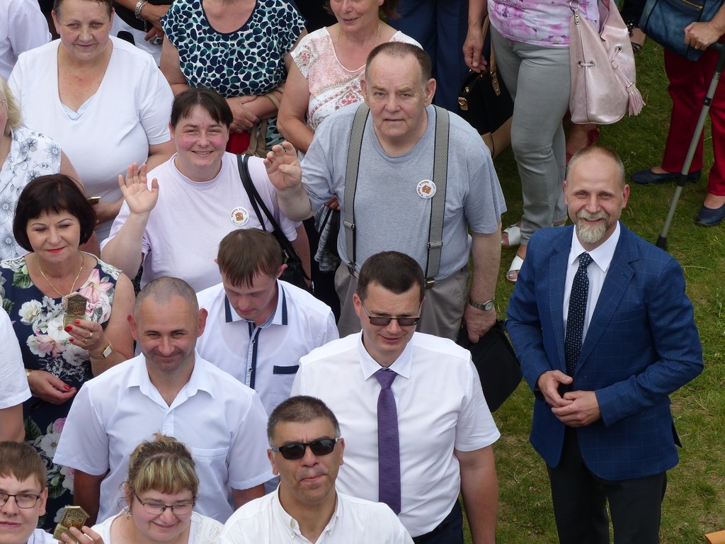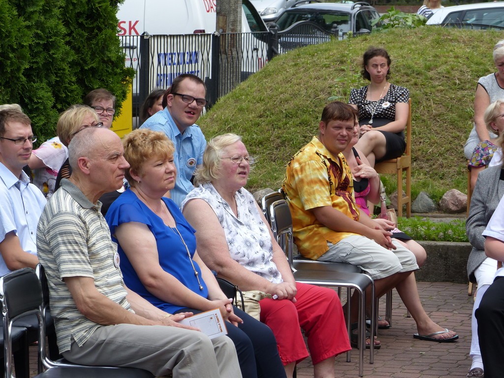 Burmistrz Lęborka Witold Namyślak, dziękując za wielką pracę i opiekę nad niepełnosprawnymi osobami, wręczył społeczności domu prezent – wycieczkę autokarową do Parku Dinozaurów w Łebie. Każdy z domowników otrzymał na pamiątkę jubileuszową statuetkę, a wszyscy mogli zostawić po sobie na pamiątkę nietypowy ślad – węzeł krzyżykowy na materiale.