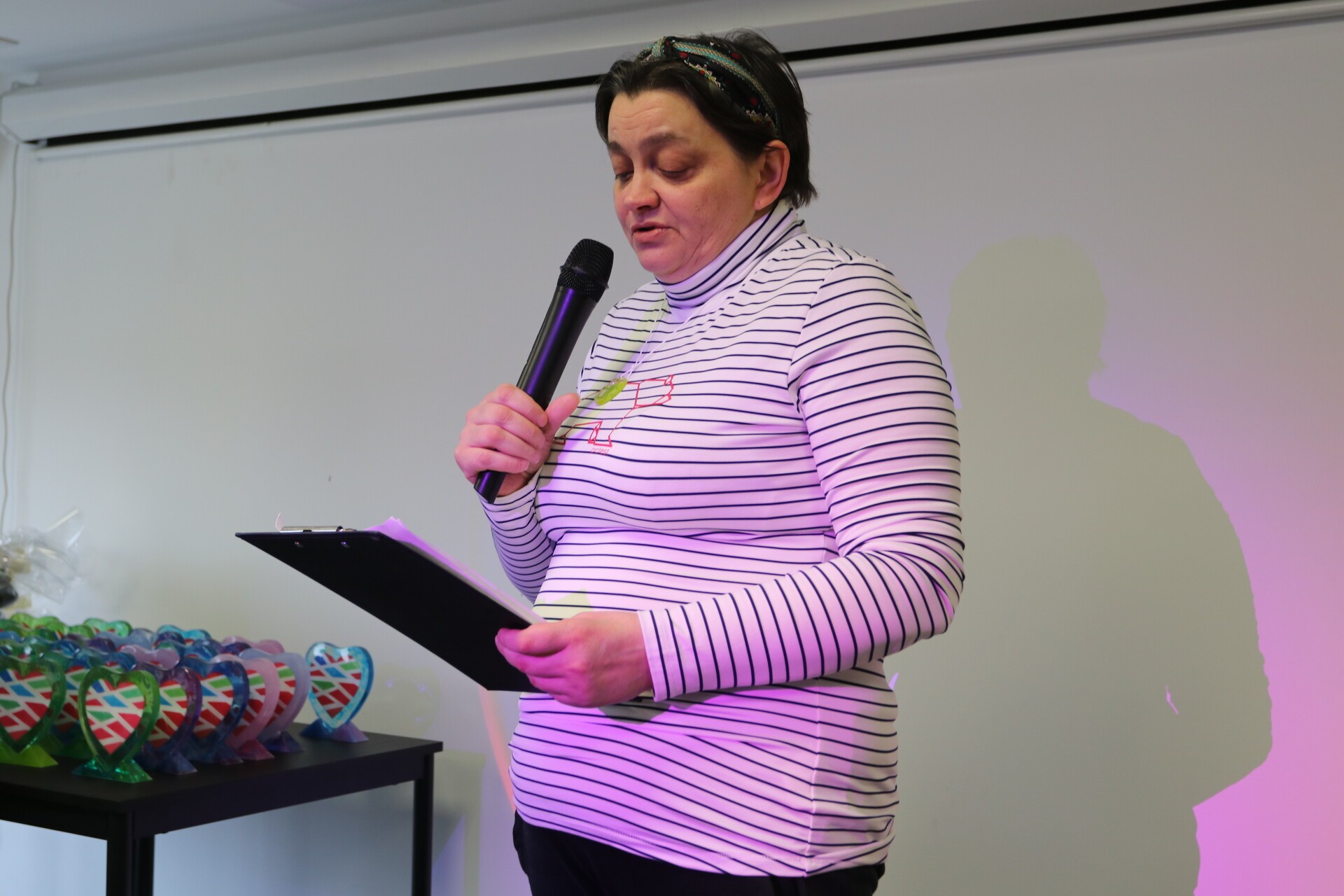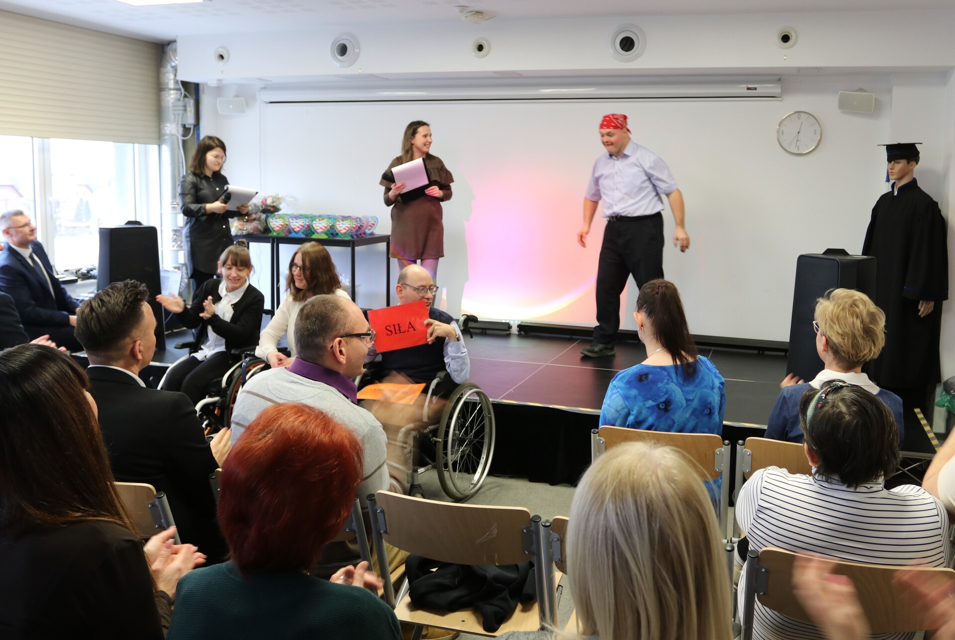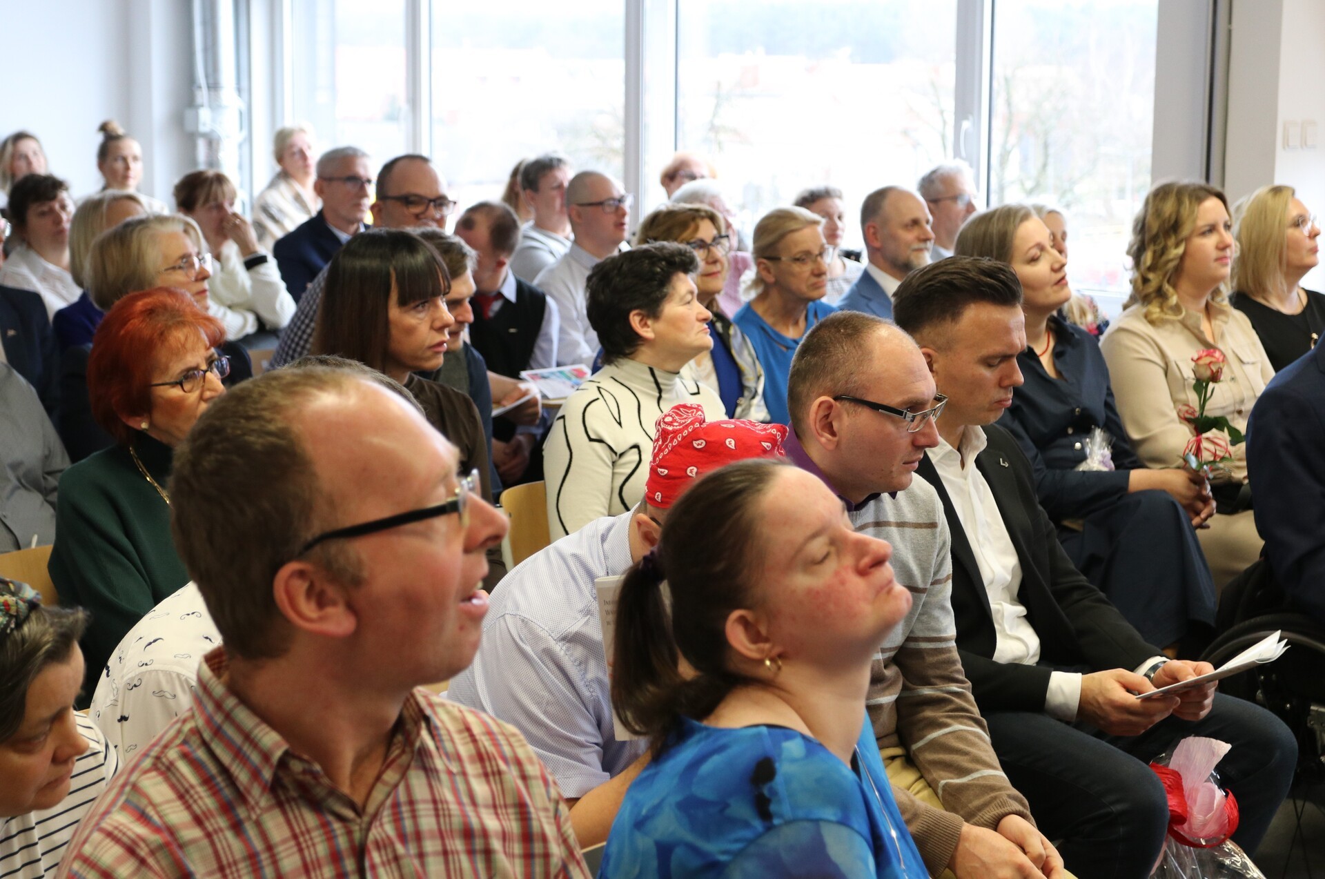 W czwartkowe przedpołudnie (06.02.2025 r.) aula Szkoły Policealnej Studium Pracowników Medycznych i Społecznych w budynku dawnego ZWAR-u wypełniła się tymi osobami, które są lub były związane z Warsztatem Terapii Zajęciowej, przede wszystkim uczestnikami zajęć oraz obecnymi i byłymi pracownikami, instruktorami i terapeutami. Uroczystą galę poprowadził kierujący od niedawna WTZ Daniel Mihuniewicz, prezes Ochotniczej Służby Ratowniczej. Warsztat ma nowego operatora od 1 listopada ubr.