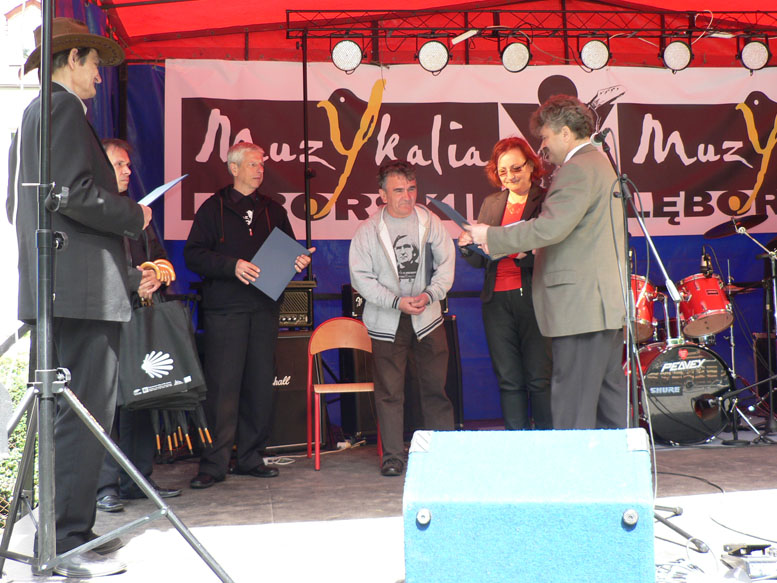 Podczas tegorocznych jubileuszowych „Muzykaliów Lęborskich" burmistrz Lęborka Witold Namyślak wraz z wiceburmistrz Alicją Zajączkowską wręczyli podziękowania dla najbardziej zasłużonych, zaangażowanych w organizację "Muzykaliów" osób.