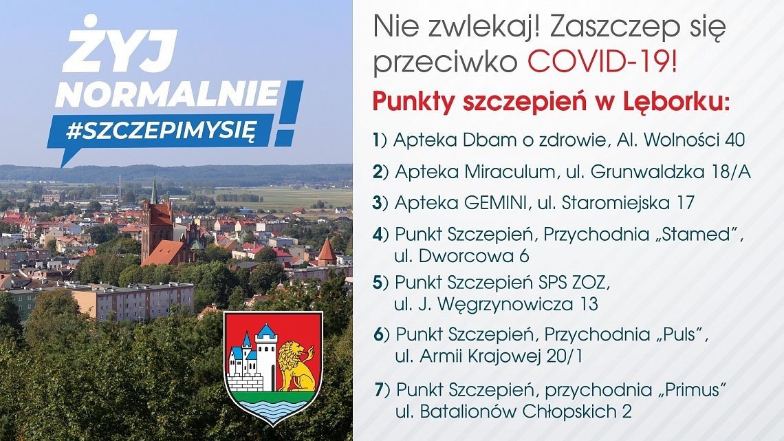 W Lęborku funkcjonuje obecnie 7 punktów szczepień. Rejestracja do nich na szczepienie możliwa jest na kilka sposobów: