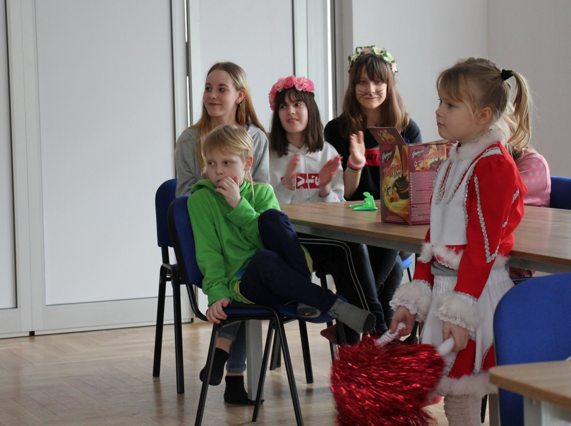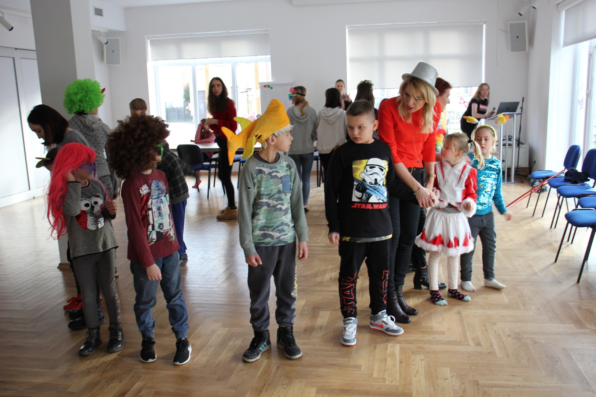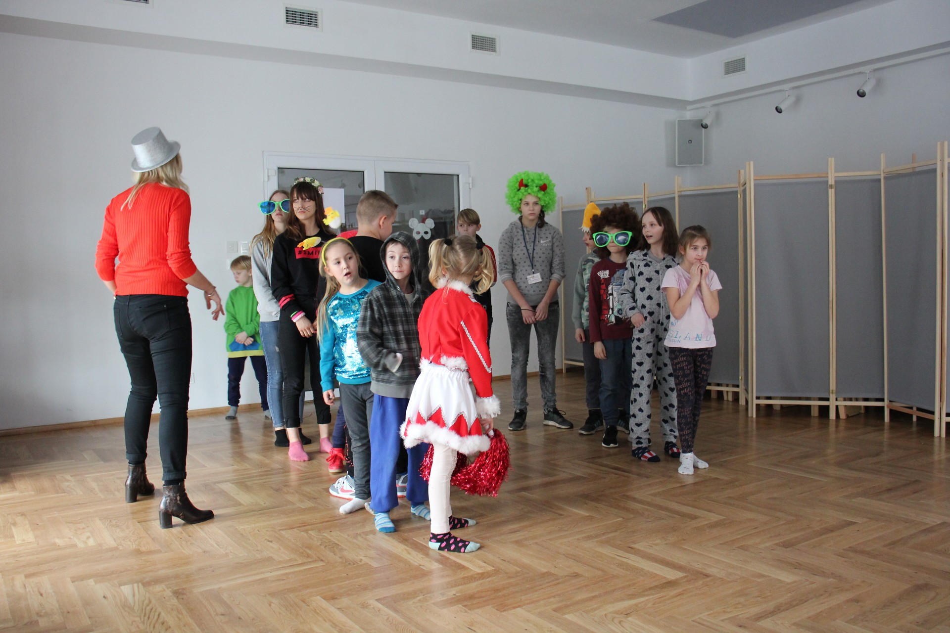 Najmłodsi założyli maski i peruki, aby jak najlepiej oddać charakter zabawy karnawałowej. Uczestniczyli w przygotowanych na tą okazję zajęciach ruchowych, tańcach oraz wielu konkursach. Pod koniec spotkania nadszedł czas na słodki poczęstunek. Wspólna zabawa zintegrowała wszystkie dzieci, które jeszcze nie raz będą razem uczestniczyć w wielu zajęciach w ramach projektu.