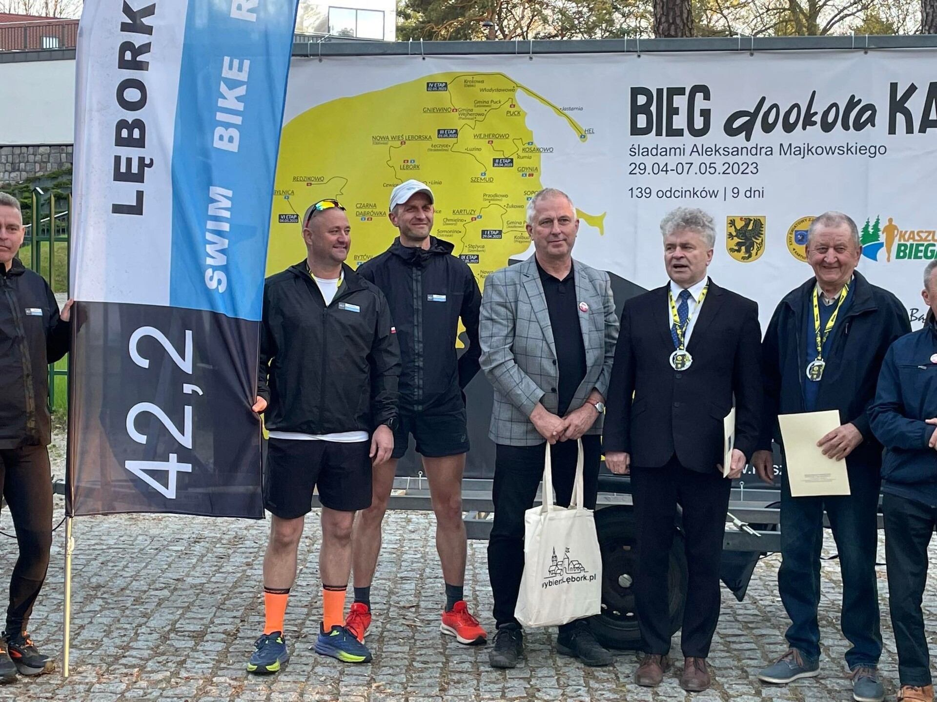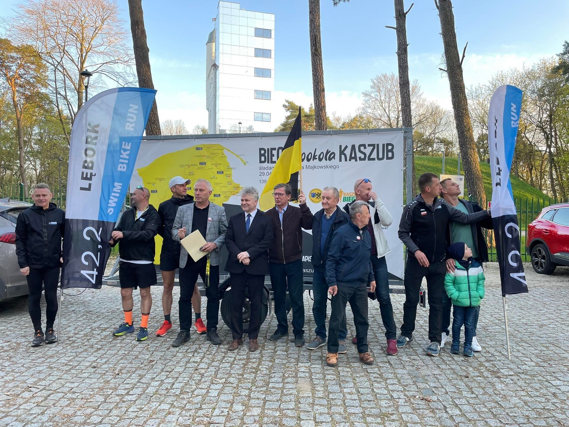3 maja 2023 r. pod Wieżą Ciśnień w Lęborku miało miejsce zakończenie V etapu I Biegu Dookoła Kaszub. W podsumowaniu uczestniczyli: Henryk Miotk – przedstawiciel organizatora, uczestnicy rajdu – członkowie Stowarzyszenia Klub 42,2 a także Stefan Labuda – prezes Zrzeszenia Kaszubsko-Pomorskiego oraz Ryszard Wenta – wiceprezes.