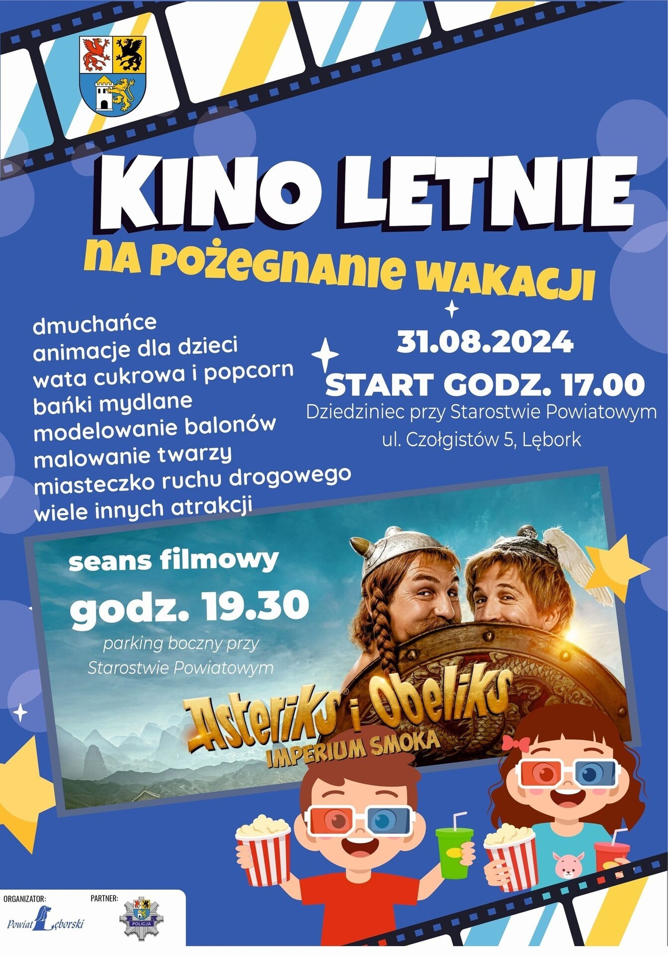 Serdecznie zapraszamy wszystkie dzieci wraz z rodzicami na wyjątkowe Kino Letnie, które odbędzie się w sobotę, 31 sierpnia, o godzinie 17:00. To doskonała okazja, aby wspólnie pożegnać wakacje w atmosferze pełnej atrakcji zarówno dla młodszych, jak i starszych uczestników!