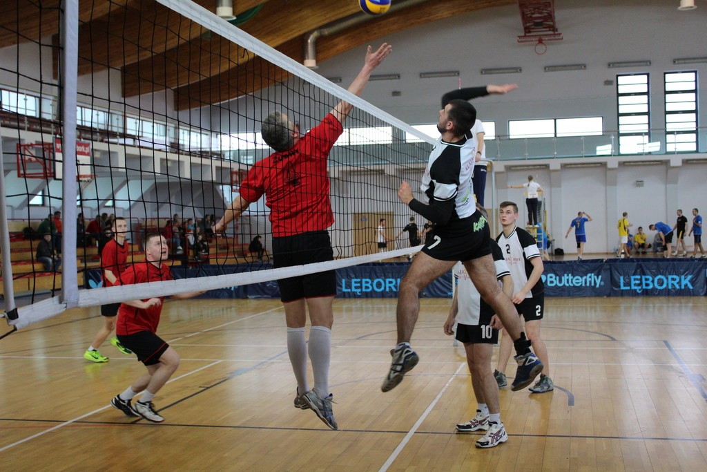 W dniu 10 kwietnia w miejskiej hali sportowej o godzinie 10:00 te właśnie zespoły rozpoczęły grę, w pojedynku AZS Lębork z KS Strzebielino zwycięsko wyszli zawodnicy ze Strzebielina wygrywając 2:0. W drugim równoległym meczu również bez straty seta Romek Lębork zwyciężył z uczniami I LO w Lęborku, którzy w minionym tygodniu wywalczyli tytuł Mistrza Powiatu Lęborskiego w siatkówce chłopców. Mecze o finał rozpoczęły się o 11. 00, oba mecze zakończyły się wynikiem 2:1. Lider rundy zasadniczej Bojan Żubry grał z zespołem Klaja Cafee. Pierwszy set zwyciężyli zawodnicy Klaja Cafee, w drugim Żubry odrobiły straty. W time breaku z przewagą 7 punktów zwyciężyli zawodnicy Klaja Cafee i to oni są bliżej finału. Wygrana jednego seta daje jeszcze spore szanse na awans do finału zawodnikom Bojan Żubry, którzy muszą zwyciężyć mecz rewanżowy. Podobna sytuacja wygląda w meczu KS Baza 44 z zespołem Drywa Kowalstwo. Ubiegłoroczny mistrz amatorskiej ligi ,KS Baza 44, bardzo musiał się namęczyć, aby zwyciężyć. Pierwszy set zwyciężyli na przewagę zawodnicy Drywa Kowalstwo, którzy byli aktywnie wspierani przez grupę kibiców z trybun. W drugim secie Baza postawiła na atak i dokładność gry i zwyciężyła do 19. W ostatnim secie gra również była wyrównana i ten pojedynek zakończył się wynikiem 15:12 dla KS Baza 44. Za tydzień odbędą się mecze rewanżowe i wtedy poznamy zespoły grające o finał i pozostałe miejsca.