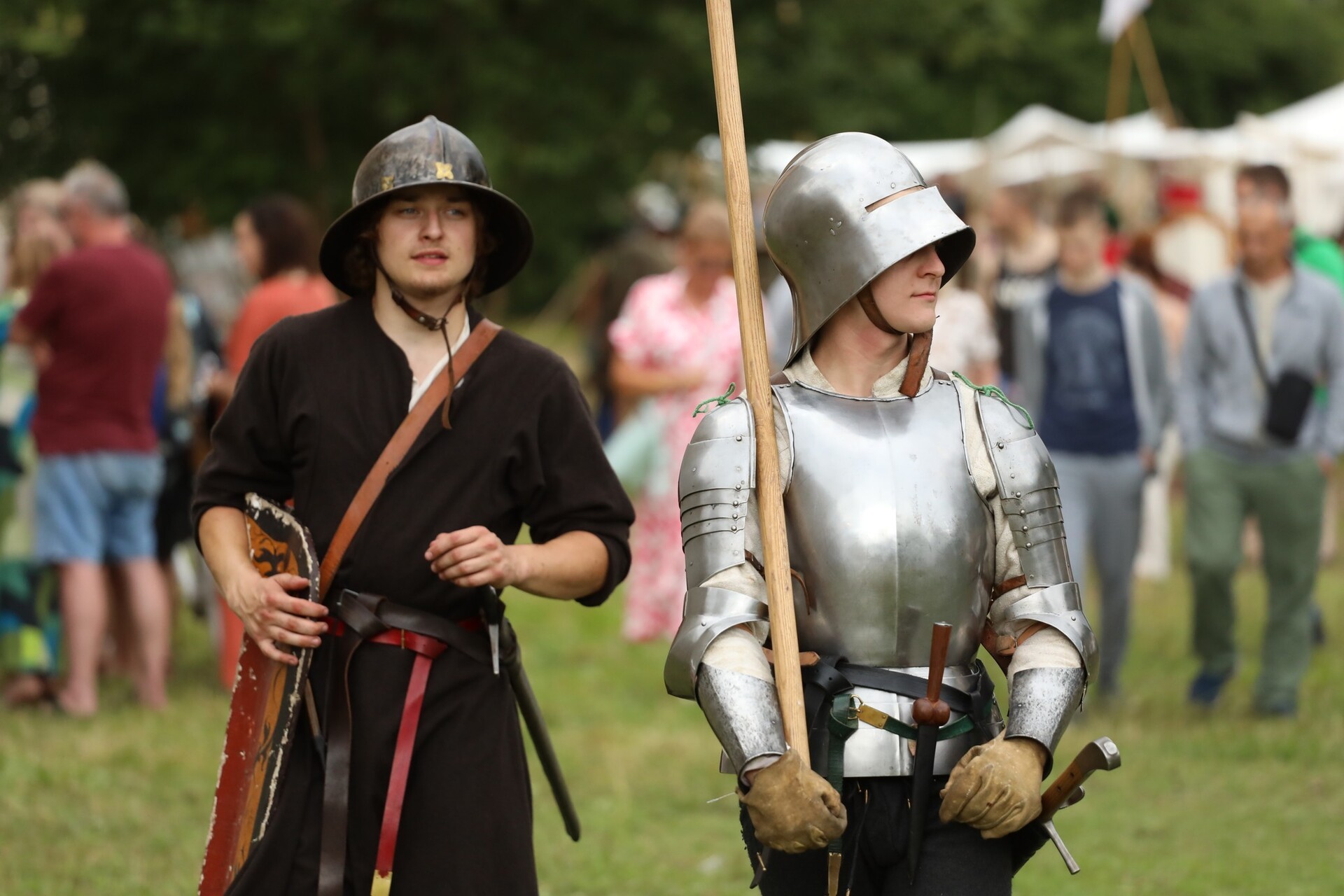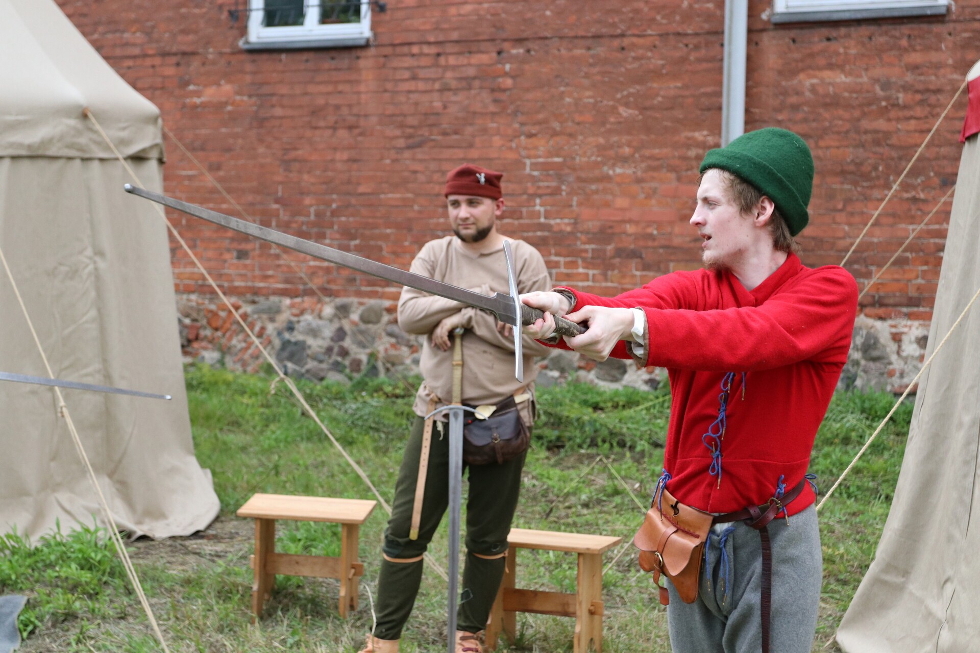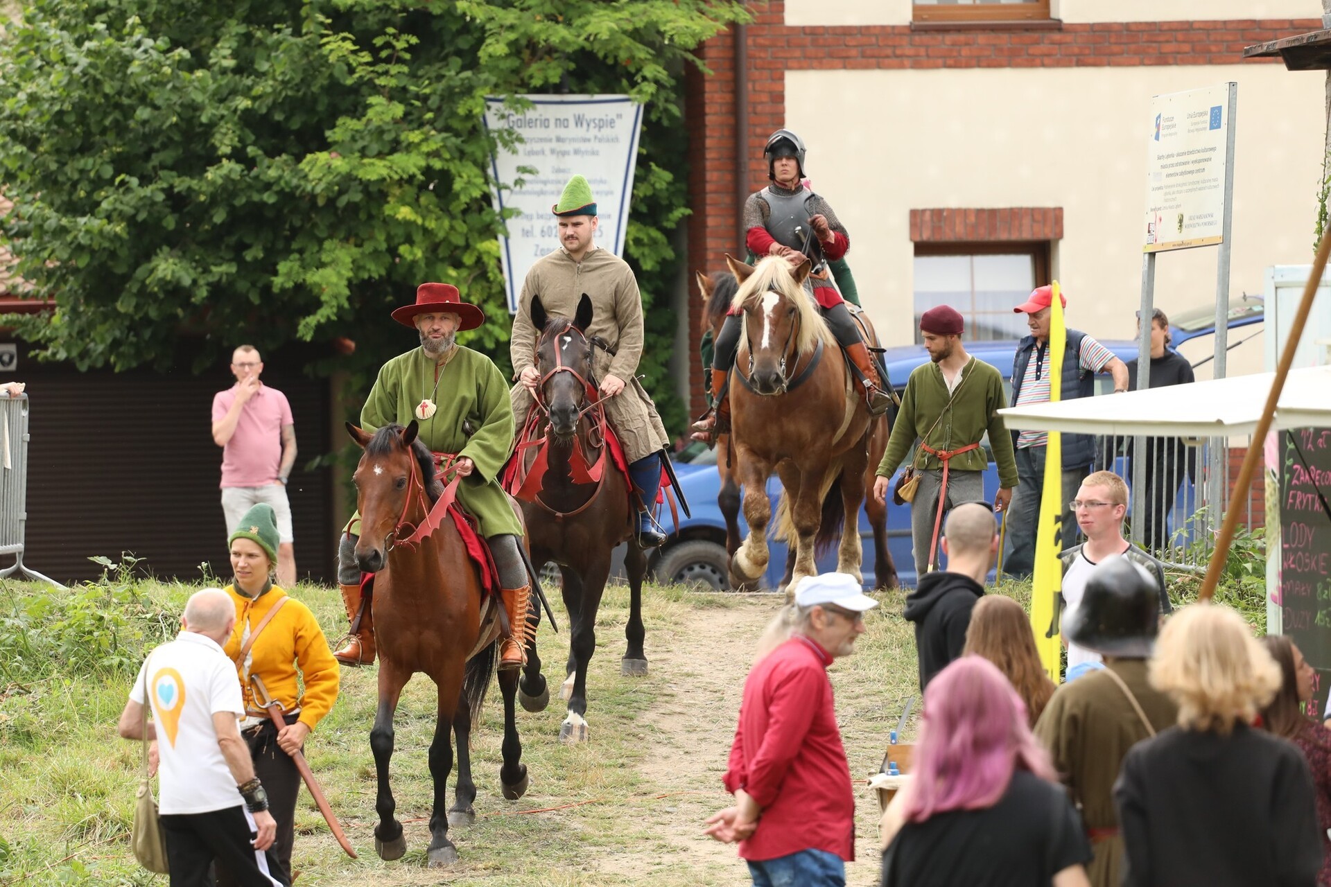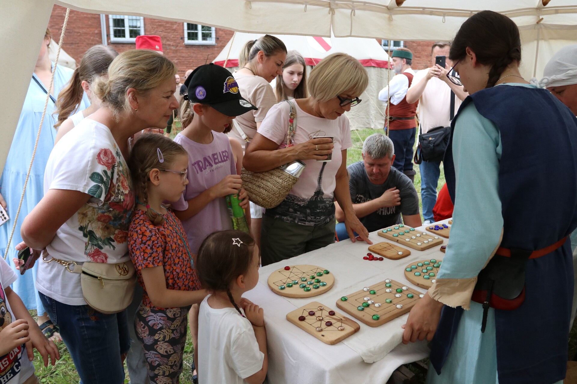 W namiotach i straganach stylizowanych na średniowieczne targowisko można było spotkać - zaproszonych przez Lęborskie Bractwo Historyczne - rekonstruktorów i pasjonatów historii, którzy z pasją, zaangażowaniem i kunsztem rzemiosła pokazali, jak wyglądało życie przed wiekami. Podczas jarmarku była okazja zobaczyć, jak dawniej wyglądał proces wytwarzania szkła przez ręczne dmuchanie i formowanie. Był mydlarz wytwarzający mydło, kowal od broni i narzędzi – tworzący wierne repliki średniowiecznych militariów, rekonstruktor prezentujący wykonane przez siebie zbroje rycerskie, artyści, którzy malują tarcze złotem, aby oddać ducha epoki. Była okazja spróbować swoich sił w szermierce, czy zobaczyć, jak dawniej wytwarzano skórzaną galanterię.