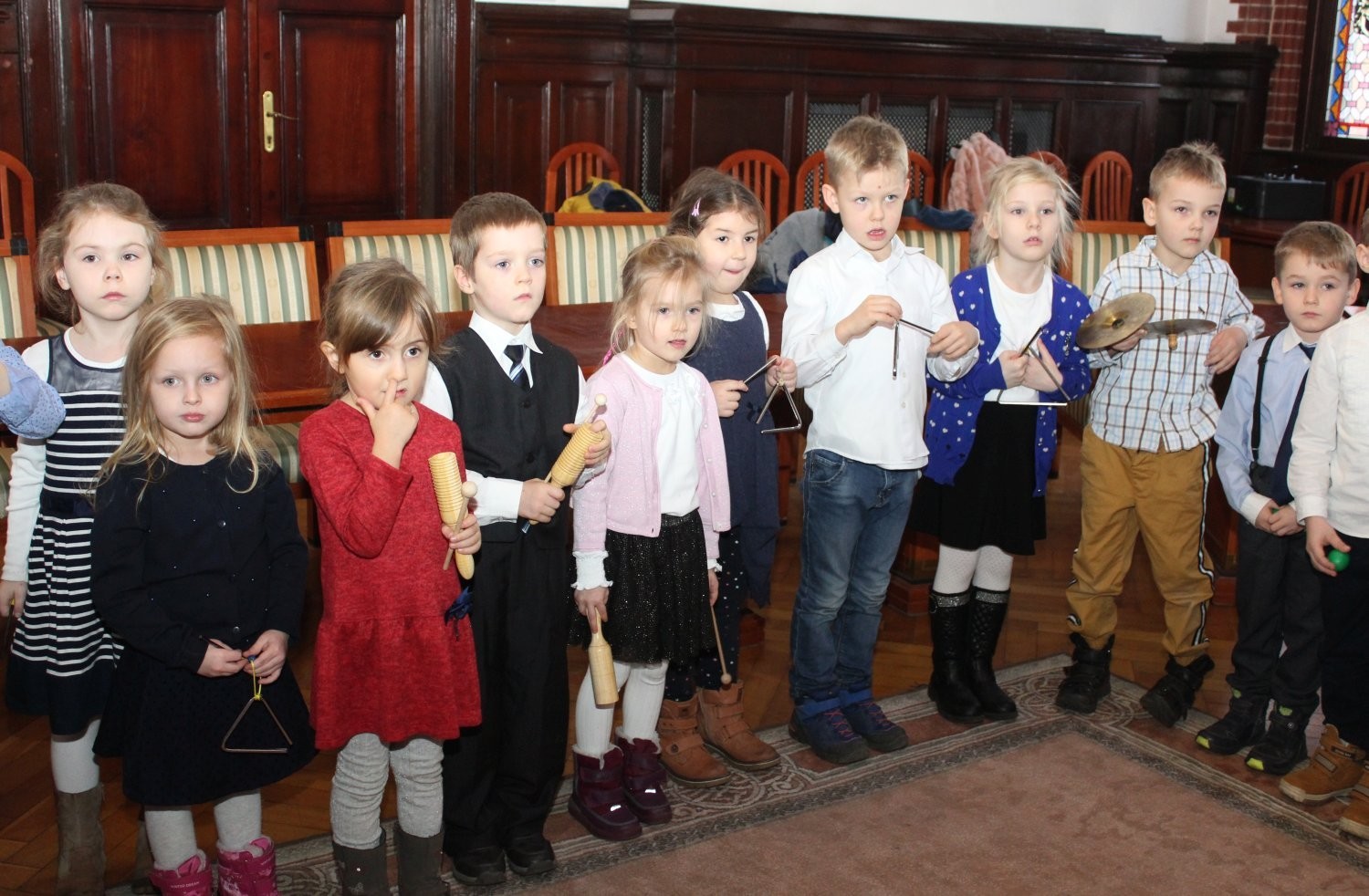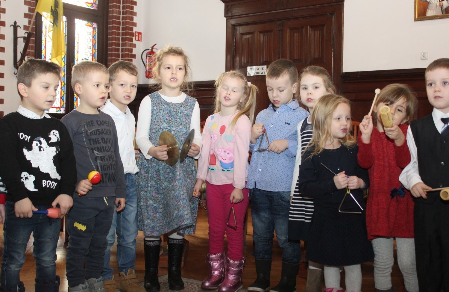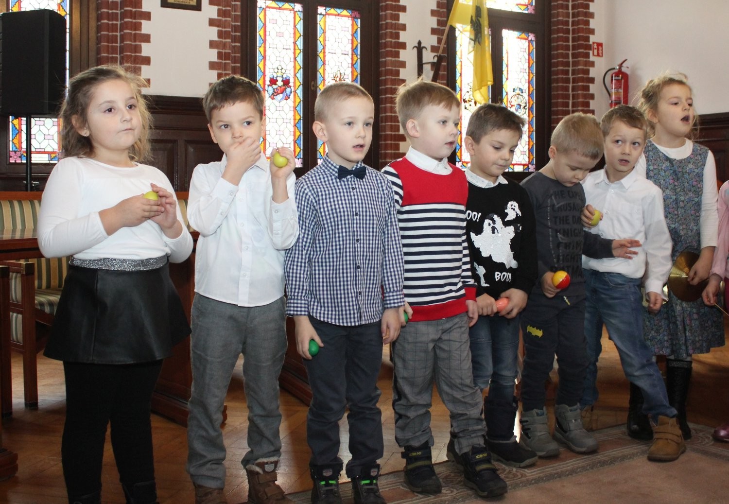 Ratusz odwiedziły przedszkolaki z grupy „Biedronki” z Przedszkola nr 9. Miłych gości przyjęła Zastępca Burmistrza Teresa Ossowska-Szara oraz Sekretarz Miasta Marian Kurzydło. Dzieci zaprezentowały układ z instrumentami do kolędy „Przybieżeli do Betlejem…” W przedszkolu w ramach zajęć dodatkowych prężnie działa koło muzyczne „Drygasy”. Przedszkolni kolędnicy wręczyli świąteczny stroik, zwiedzili zabytkowy budynek, a przy wyjściu otrzymali małe słodkości.