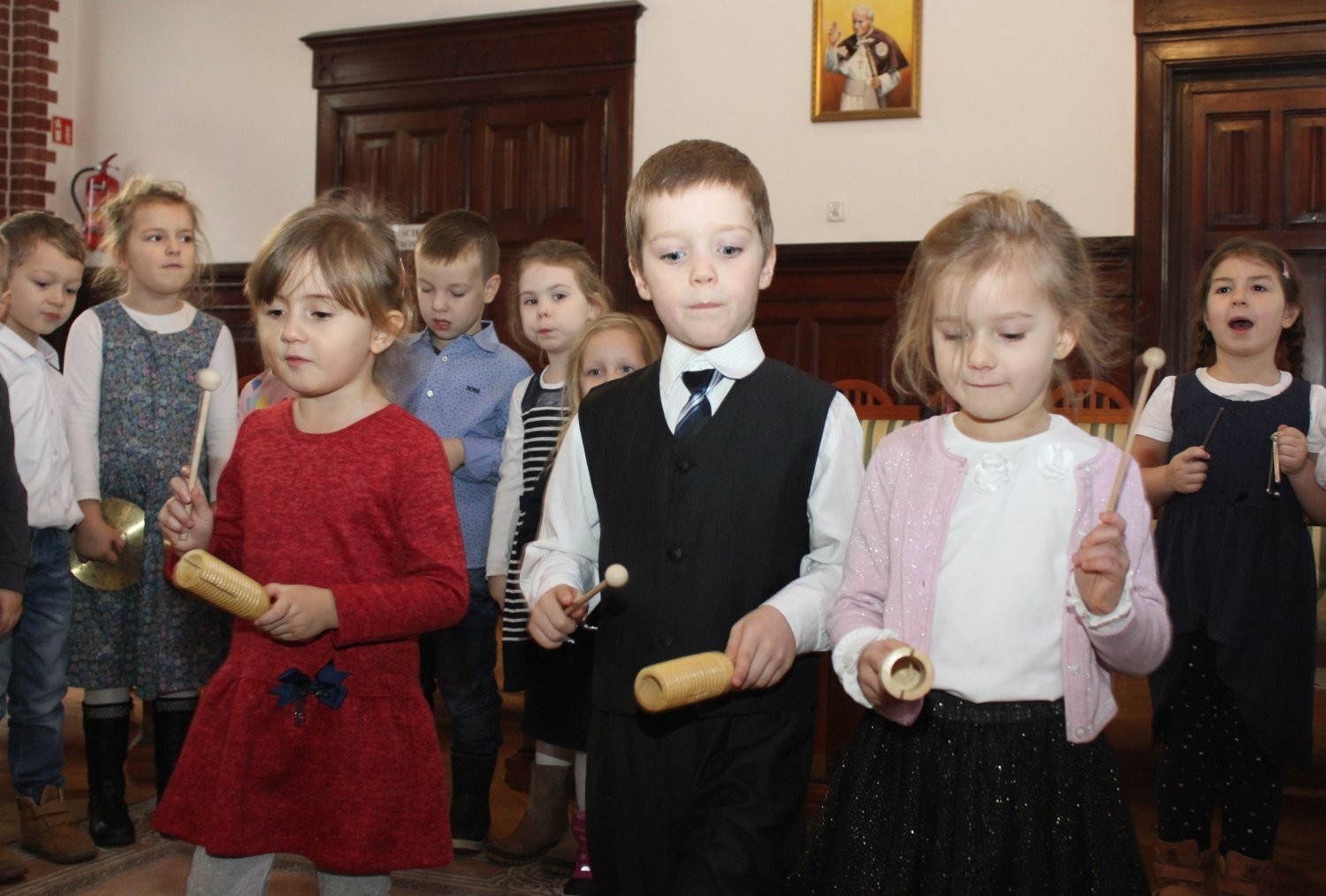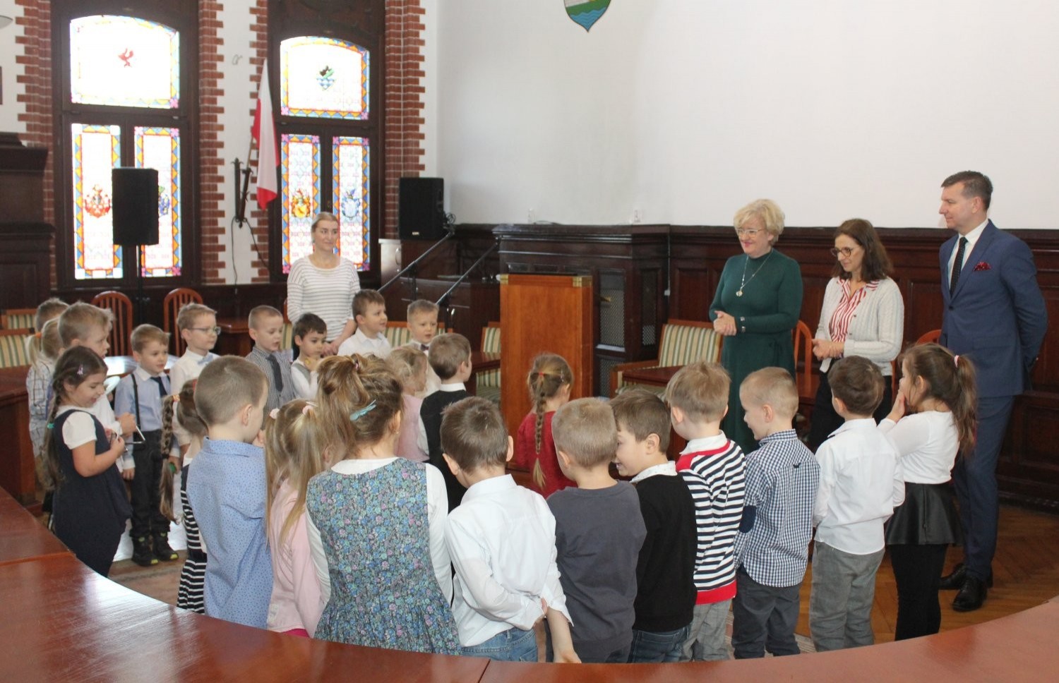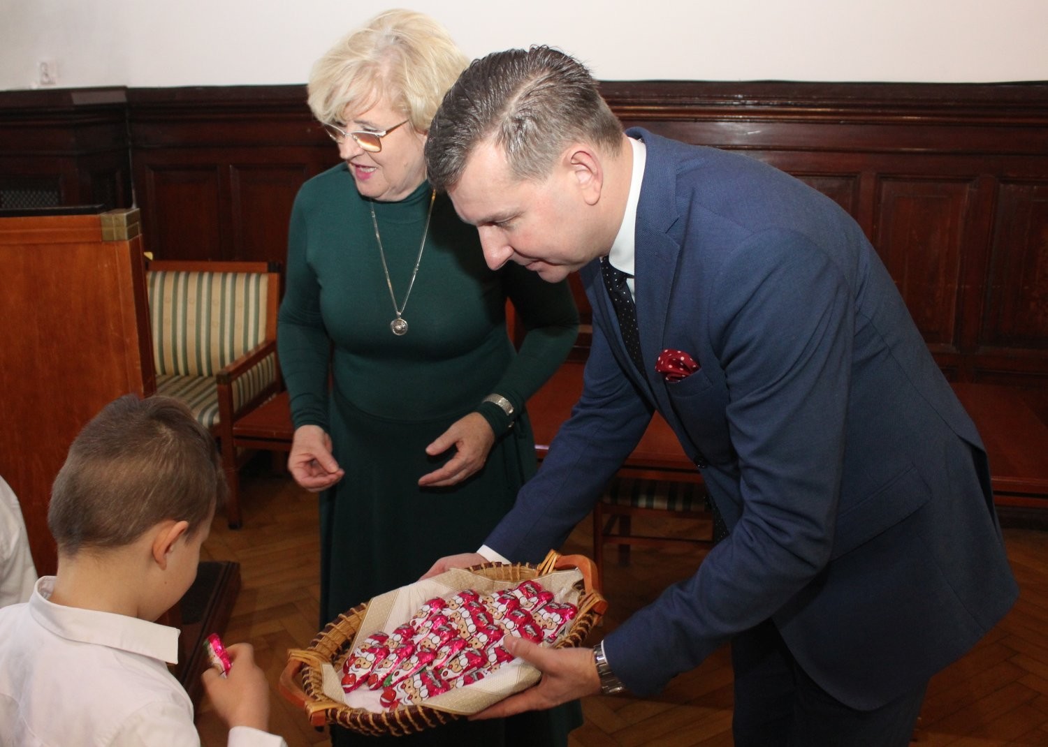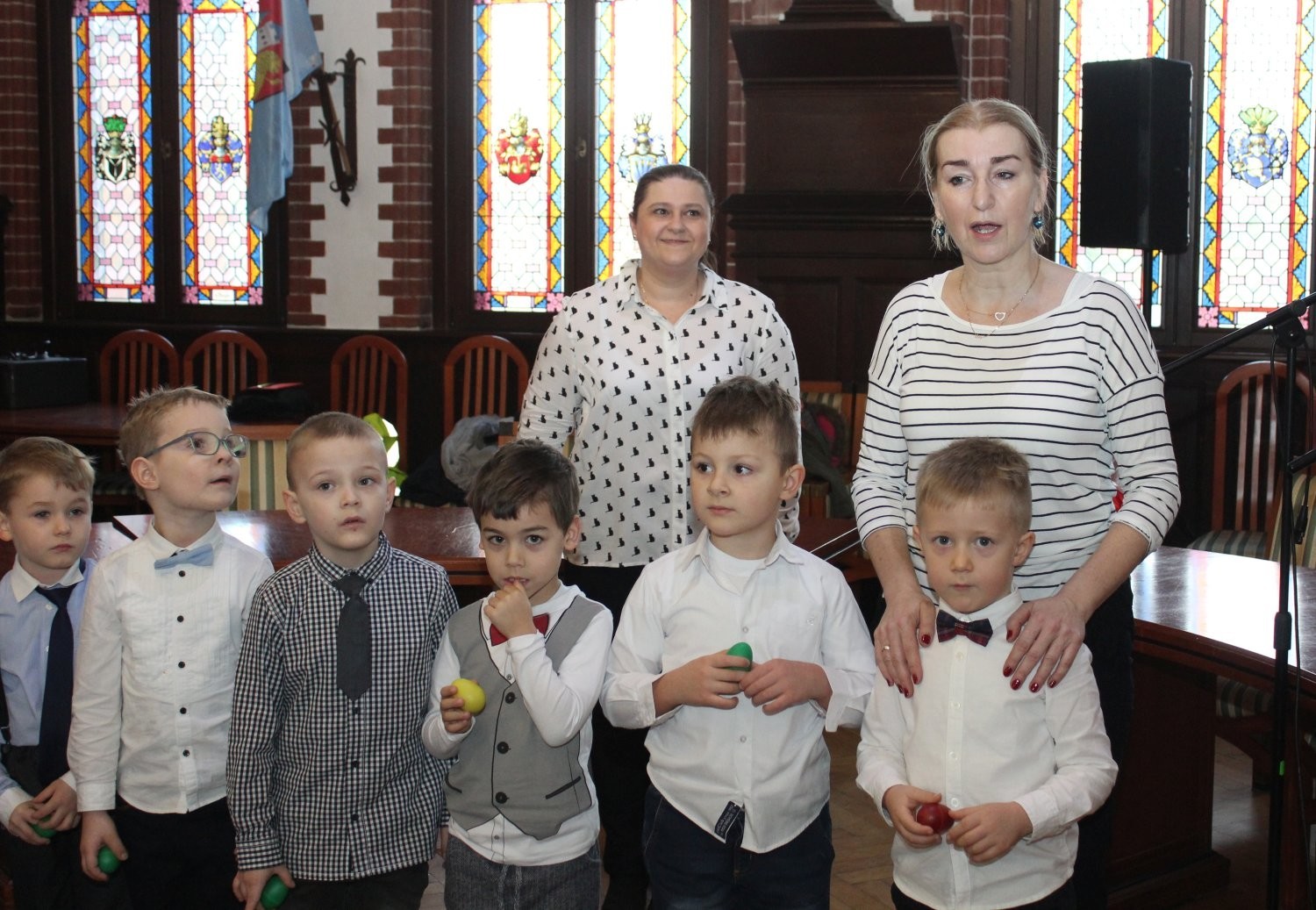 Ratusz odwiedziły przedszkolaki z grupy „Biedronki” z Przedszkola nr 9. Miłych gości przyjęła Zastępca Burmistrza Teresa Ossowska-Szara oraz Sekretarz Miasta Marian Kurzydło. Dzieci zaprezentowały układ z instrumentami do kolędy „Przybieżeli do Betlejem…” W przedszkolu w ramach zajęć dodatkowych prężnie działa koło muzyczne „Drygasy”. Przedszkolni kolędnicy wręczyli świąteczny stroik, zwiedzili zabytkowy budynek, a przy wyjściu otrzymali małe słodkości.
