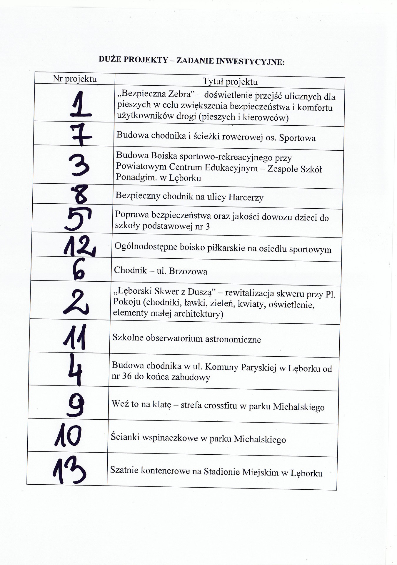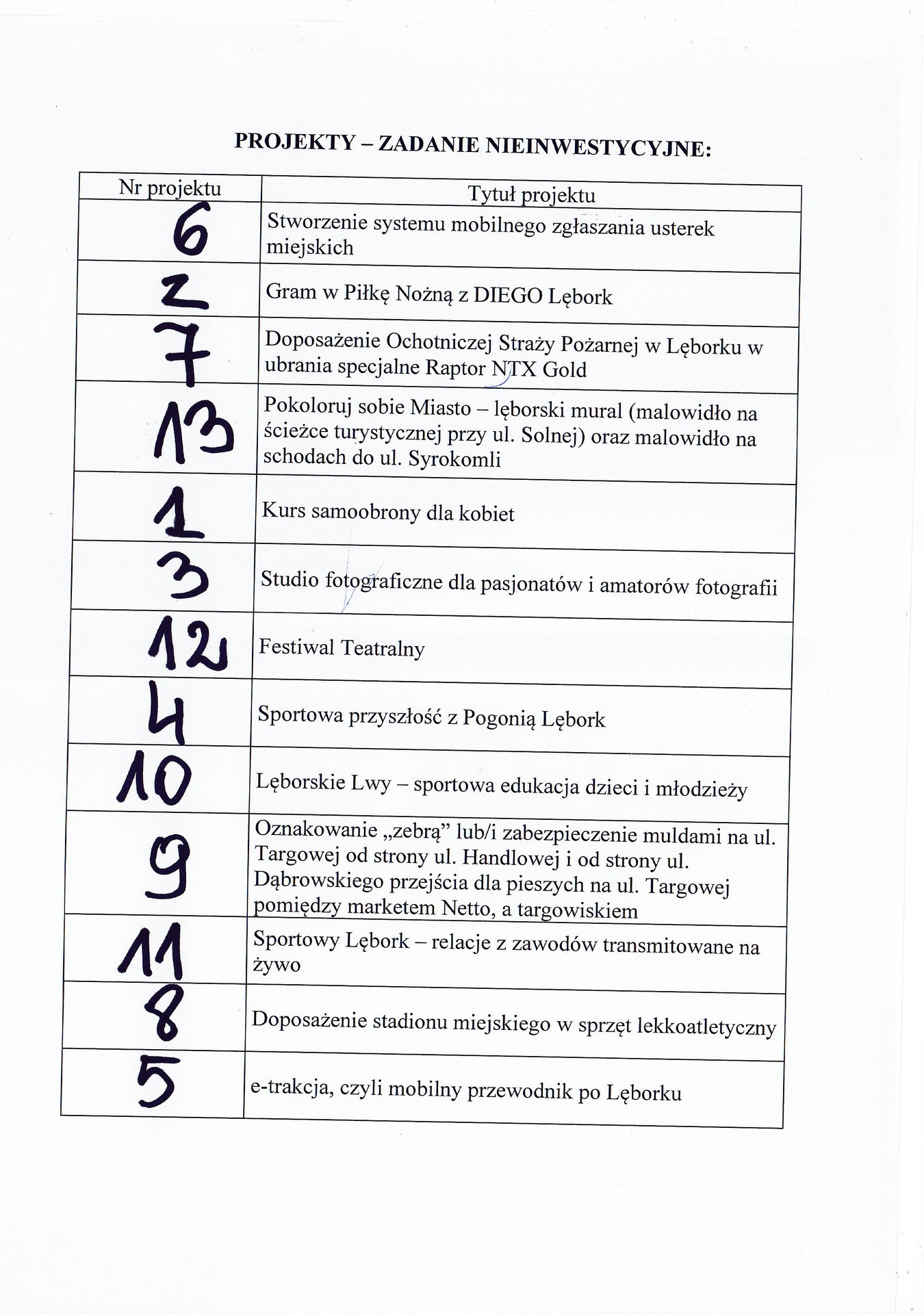 W dniu 6 września 2018 r., o godzinie 14:30 w Sali Rajców (sala 101) Urzędu Miejskiego w Lęborku odbyło się publiczne losowanie kolejności projektów na Liście projektów do głosowania.