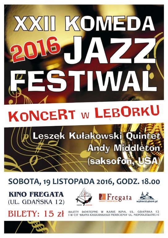 Lęborskie Centrum Kultury „Fregata” zaprasza na koncert w ramach XXII Komeda Jazz Festiwal. W sobotę, 19 listopada br. o godz. 18.00 na scenie w Kinie Fregata zaprezentuje się Leszek Kułakowski Quintet z wybitnym amerykańskim saksofonistą – Andy Middletonem.