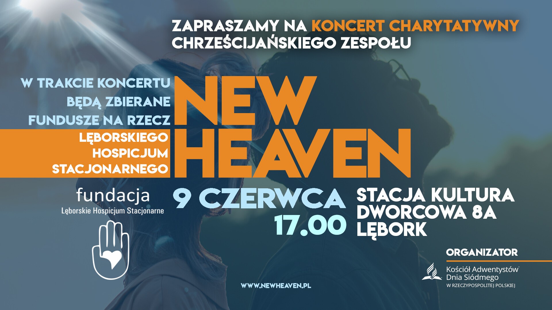 W imieniu Kościoła Adwentystów Dnia Siódmego i Fundacji Lęborskie Hospicjum Stacjonarne zapraszamy do Stacji Kultura na wyjątkowy koncert charytatywny. 9 czerwca 2024 roku na scenie wystąpi znany i lubiany zespół New Heaven, który wykonuje muzykę chrześcijańską w spokojnym, softrockowym klimacie. Początek wydarzenia o godzinie 17.00.
