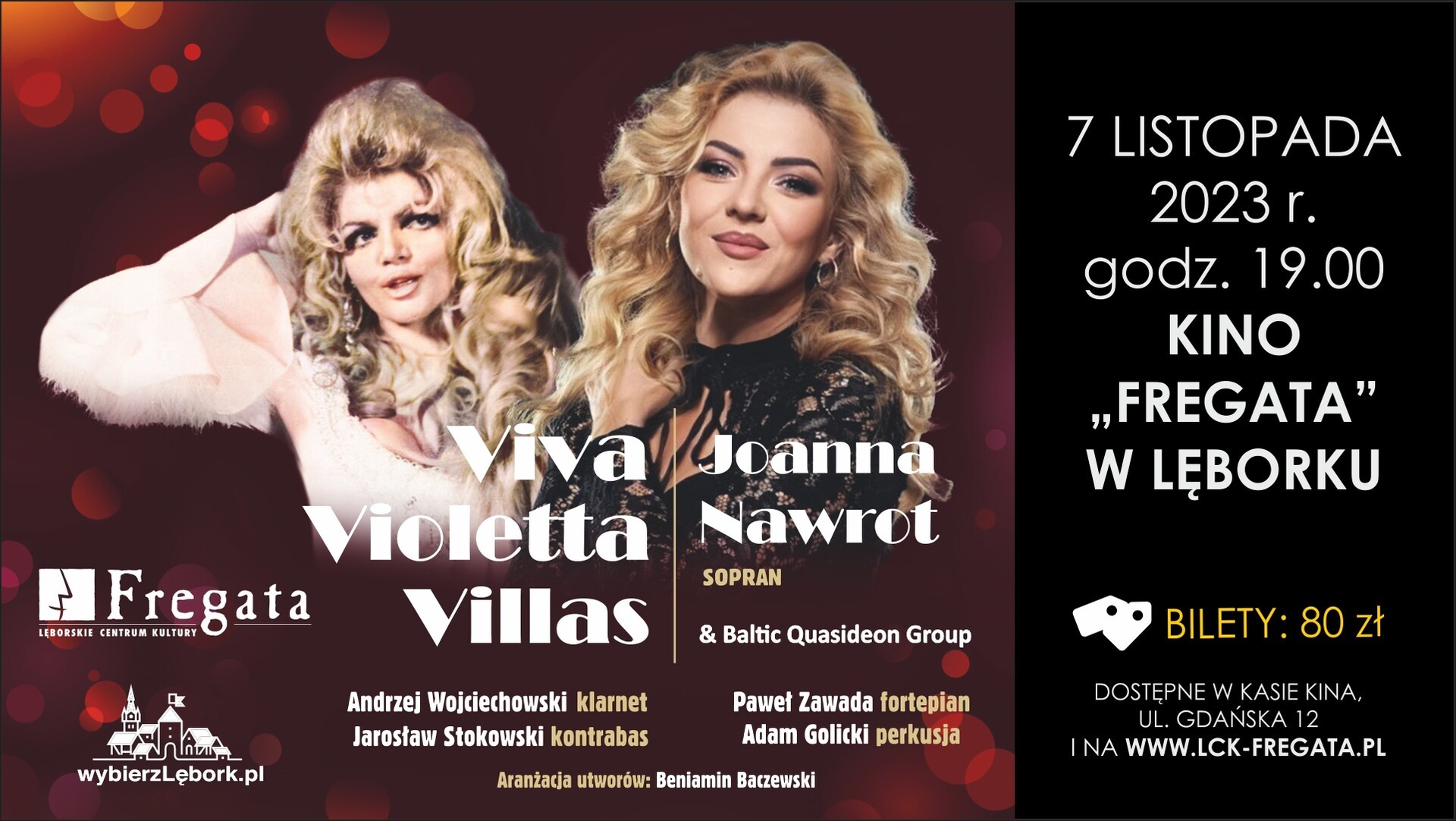Lęborskie Centrum Kultury „Fregata” zaprasza na Wielką Galę Koncertową z największymi przebojami wspaniałej polskiej Primadonny - Violetty Villas. Śpiewaczki posiadającej czterooktawową skalę głosu, słynącej ze swego charakterystycznego wizerunku wykreowanego na styl hollywoodzkiej gwiazdy lat 60-tych, któremu pozostawała wierna.